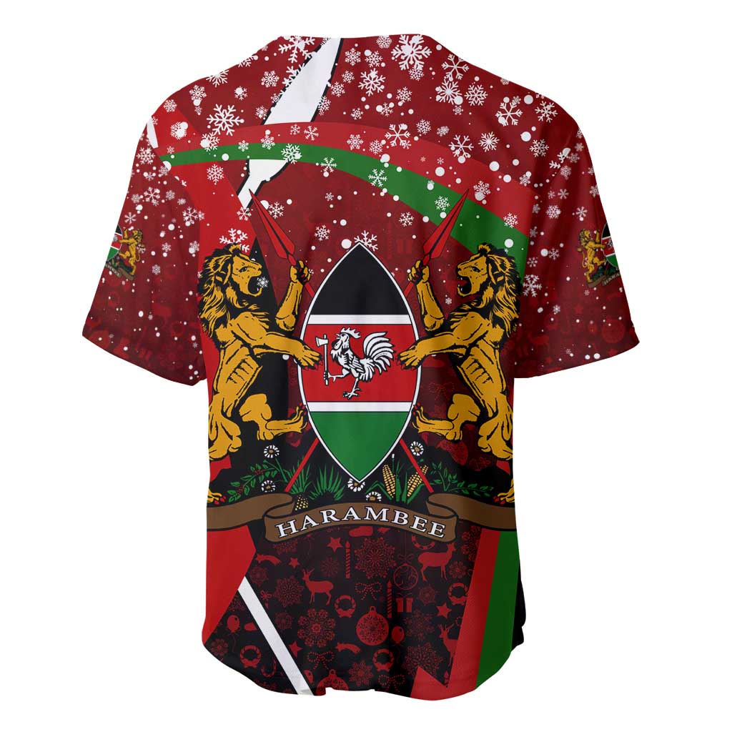 Kenya Christmas Baseball Jersey Santa Claus Spear and Red Green Harambee Crest