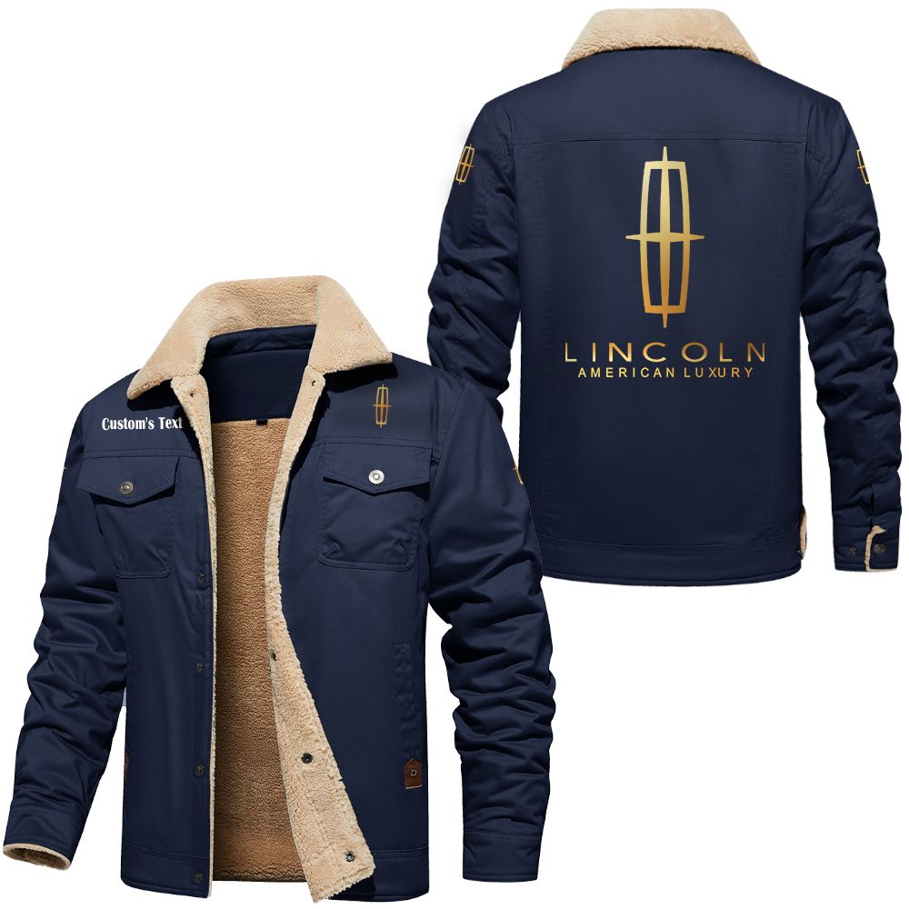 Lincoln American Luxury Custom Name Skull Design Cargo Fleece Lined Cotton Jacket