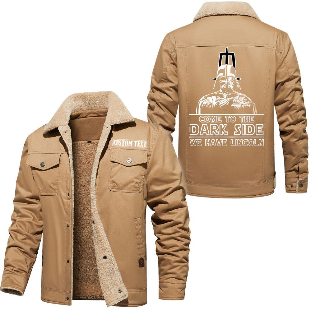 Lincoln Logo Custom Name Cargo Fleece Lined Cotton Jacket Personalized Outerwear with Dark Side Star Wars Design