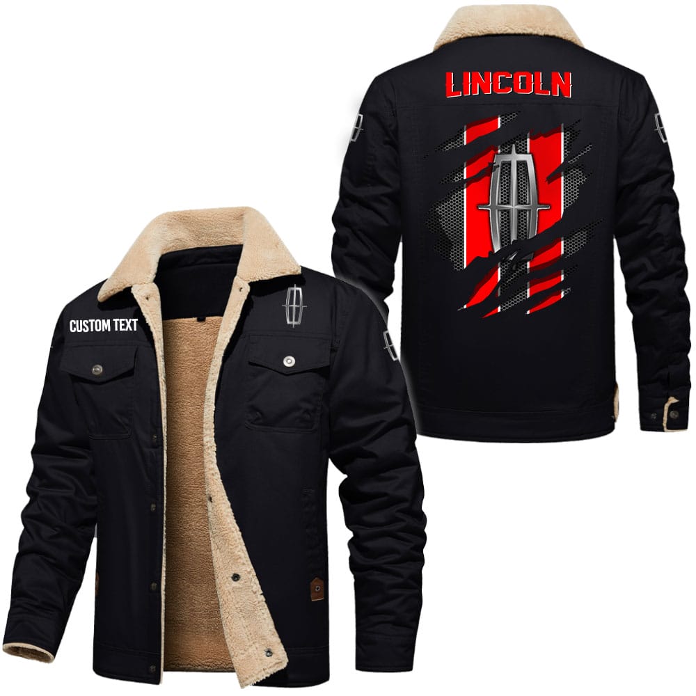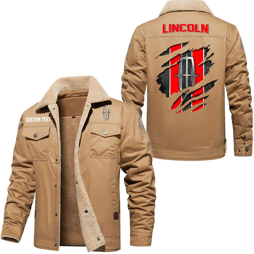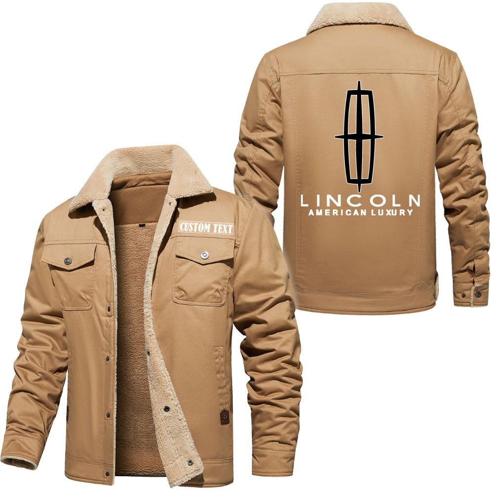 Lincoln Logo Custom Name Cargo Fleece Lined Cotton Jacket Stylish Warm Personalized Outerwear