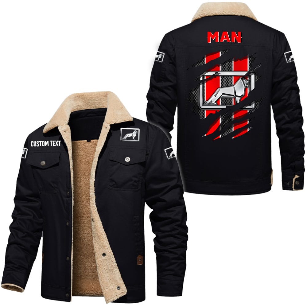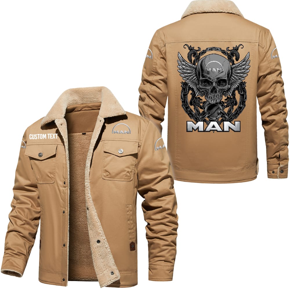 Man Logo Custom Text Cargo Fleece Lined Cotton Jacket
