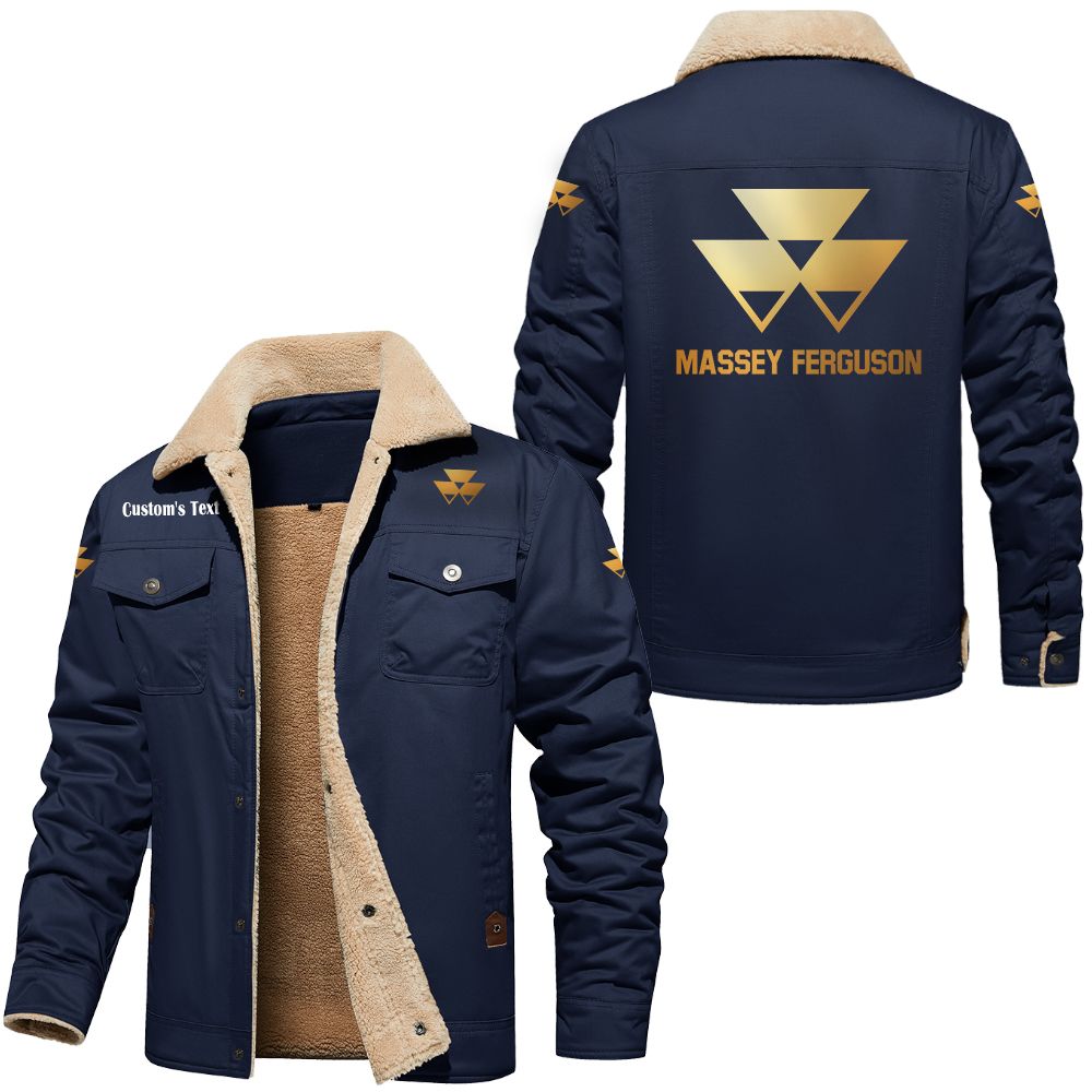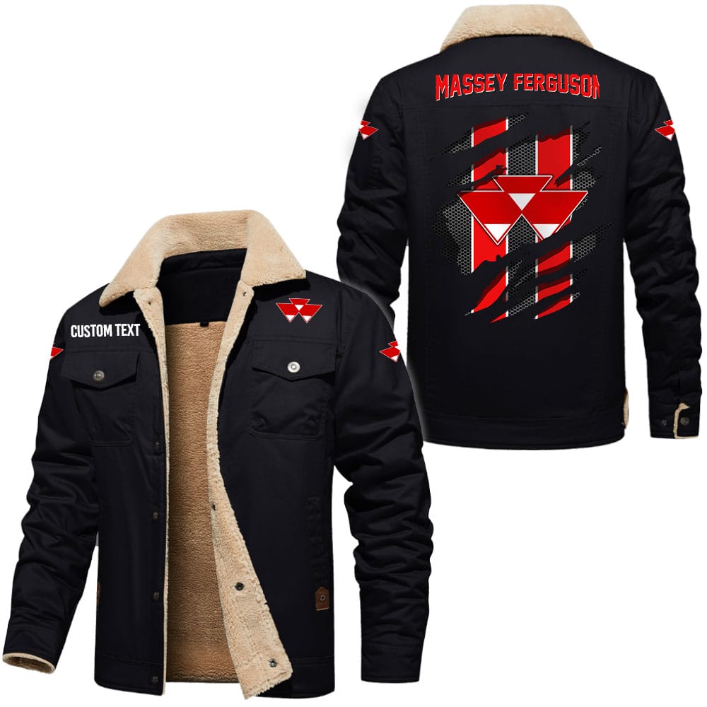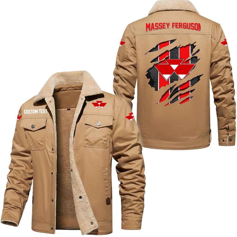 Massey Ferguson Logo Custom Name Cargo Fleece Lined Cotton Jacket