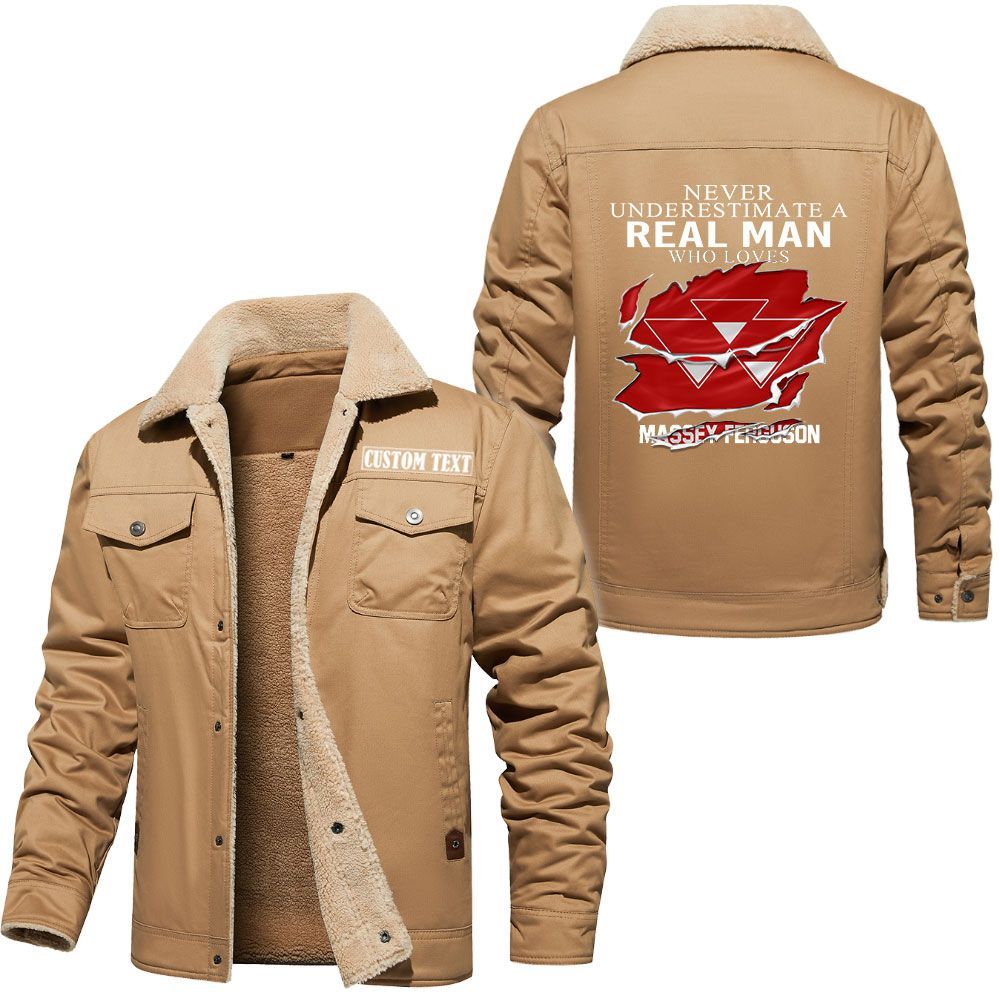 Massey Ferguson Logo Custom Name Cargo Fleece Lined Cotton Jacket A Real Man Who Loves Personalized Outerwear