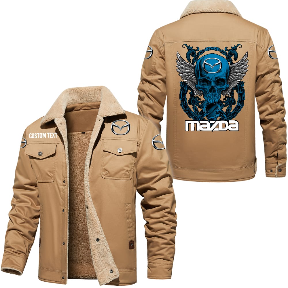 Mazda Custom Name Skull Design Cargo Fleece Lined Cotton Jacket