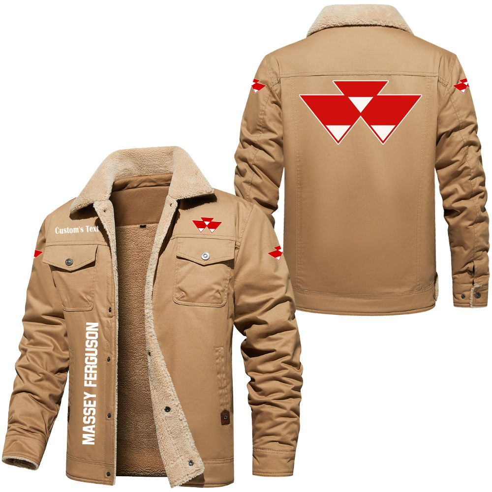 Massey Ferguson Logo Custom Text Cargo Fleece Lined Cotton Jacket