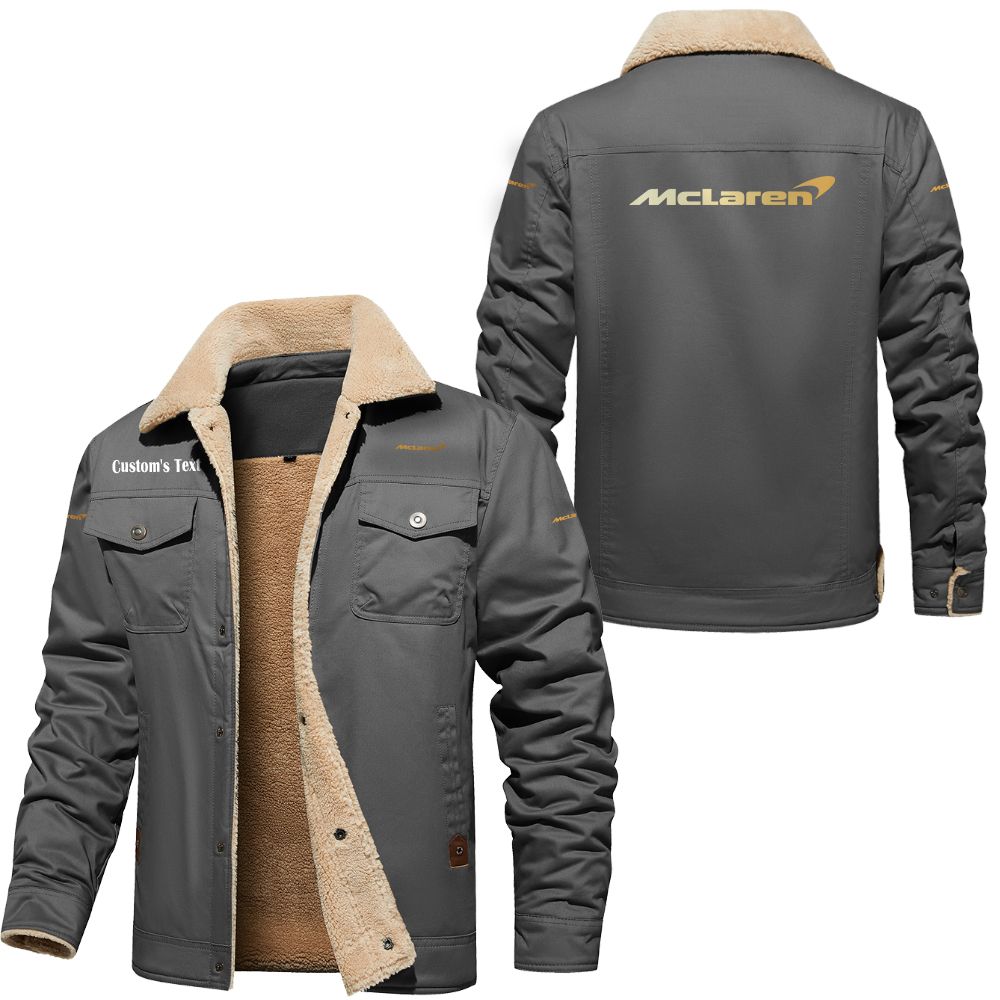 McLaren Automotive Golden Logo Custom Cargo Fleece Lined Cotton Jacket Dark Grey