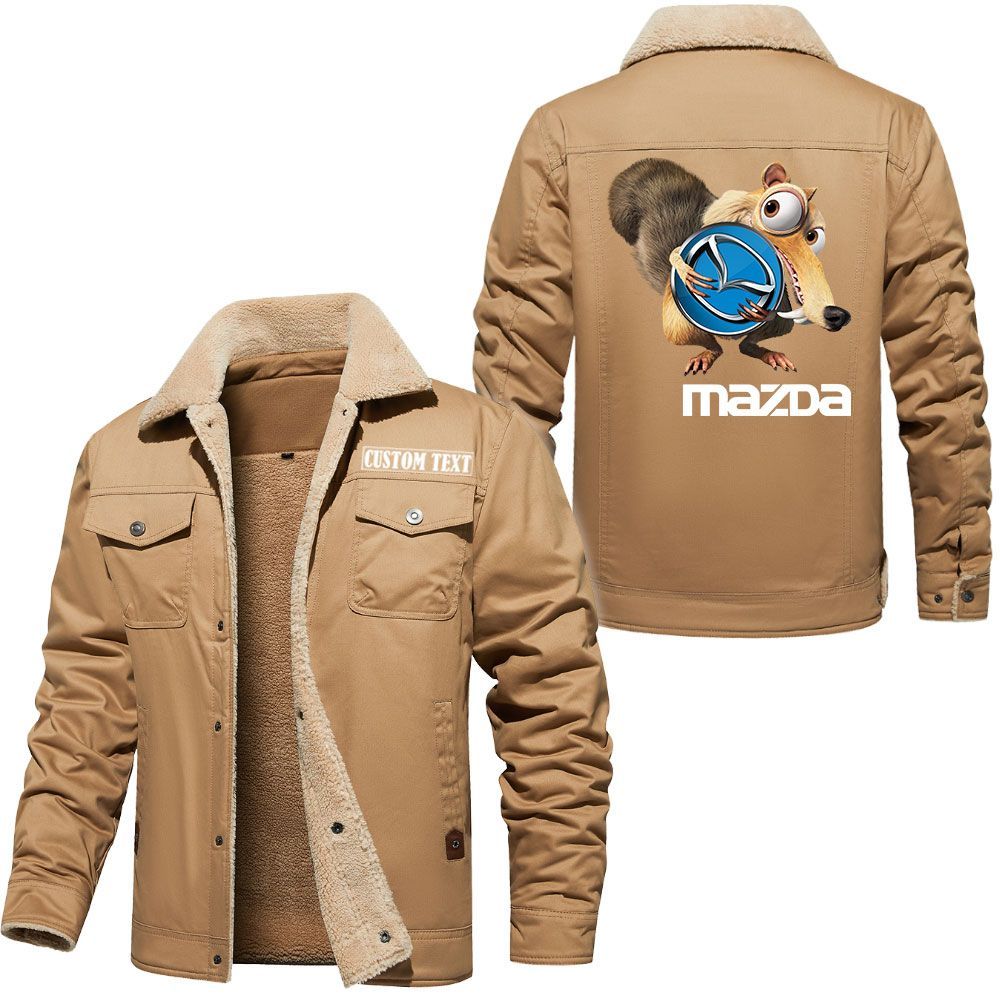 Mazda Logo Custom Name Cargo Fleece Lined Cotton Jacket Scrat Ice Age Design Personalized Outerwear