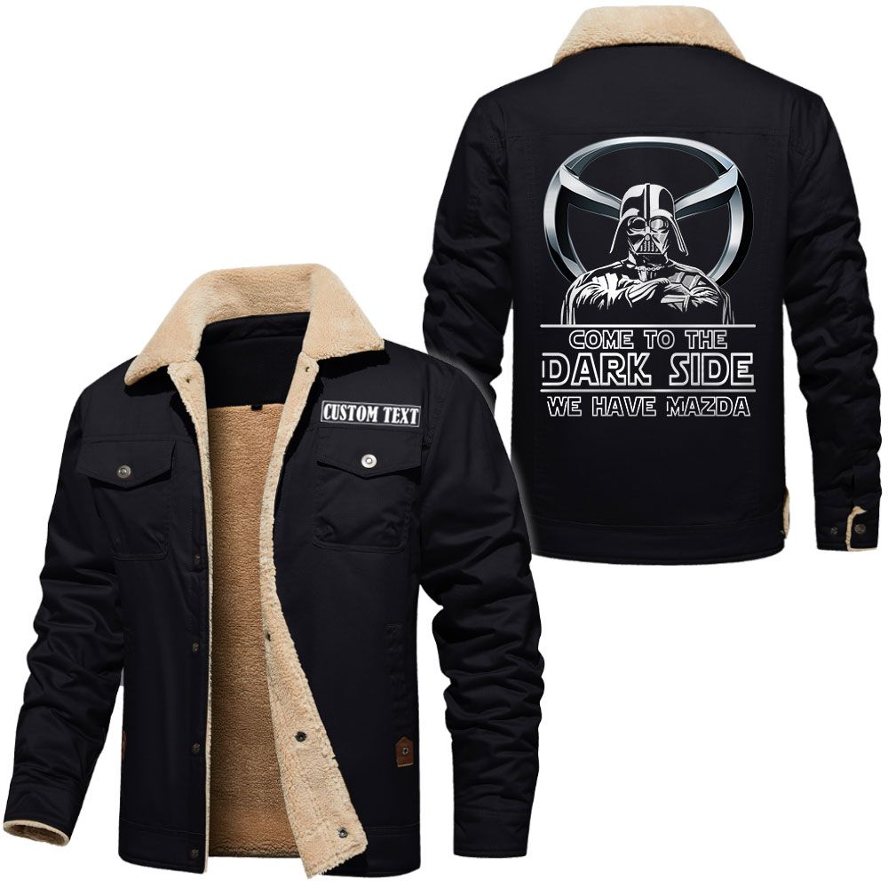 Mazda Logo Custom Name Cargo Fleece Lined Cotton Jacket Personalized Outerwear with Dark Side Star Wars Design