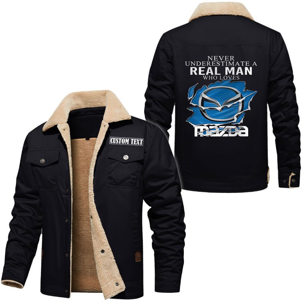 Mazda Logo Custom Name Cargo Fleece Lined Cotton Jacket A Real Man Who Loves Personalized Outerwear