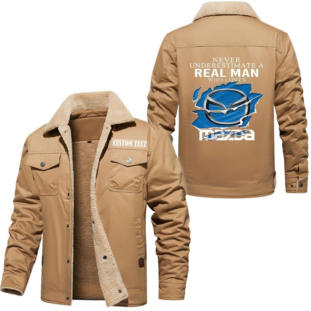 Mazda Logo Custom Text Cargo Fleece Lined Cotton Jacket