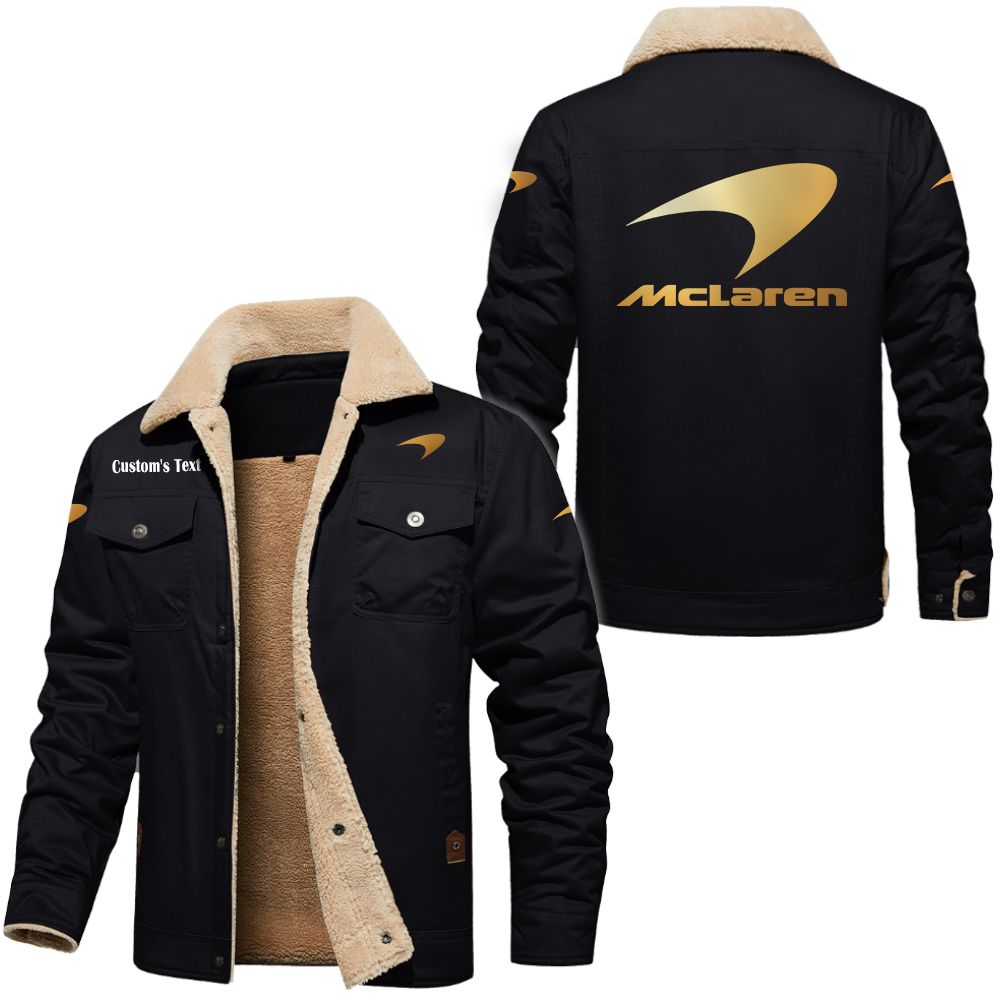McLaren Automotive Logo Custom Name Cargo Fleece Lined Cotton Jacket Stylish Warm Personalized Outerwear
