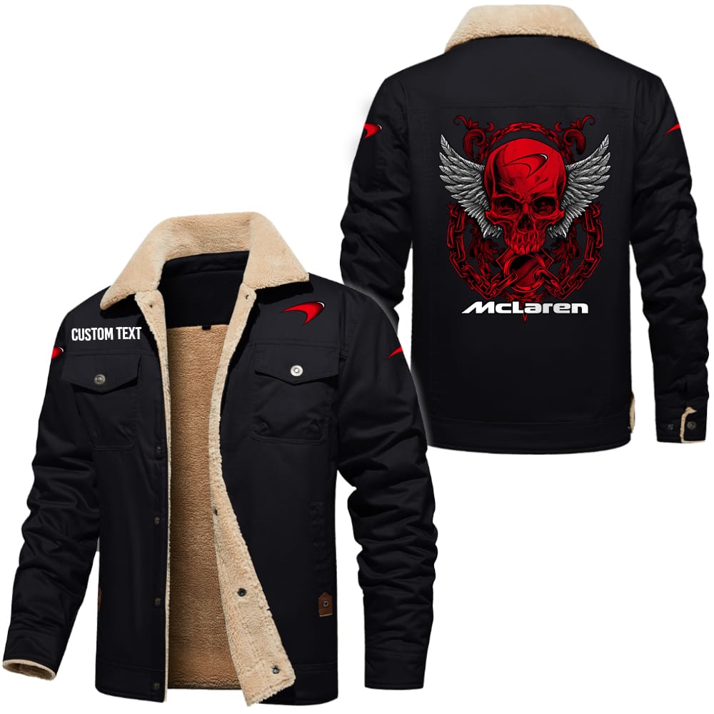 McLaren Automotive Logo Custom Name Cargo Fleece Lined Cotton Jacket Personalized Outerwear with Skull Design