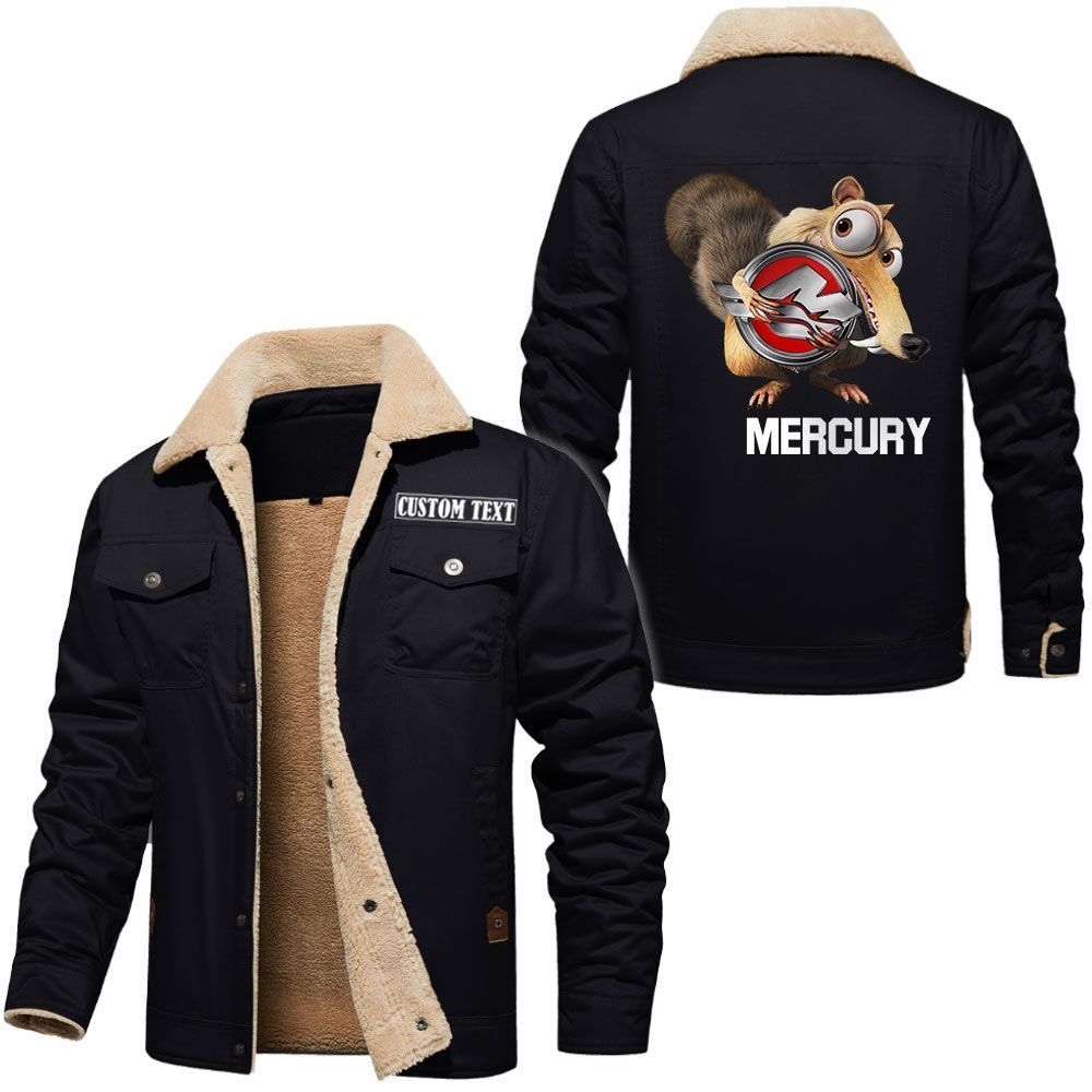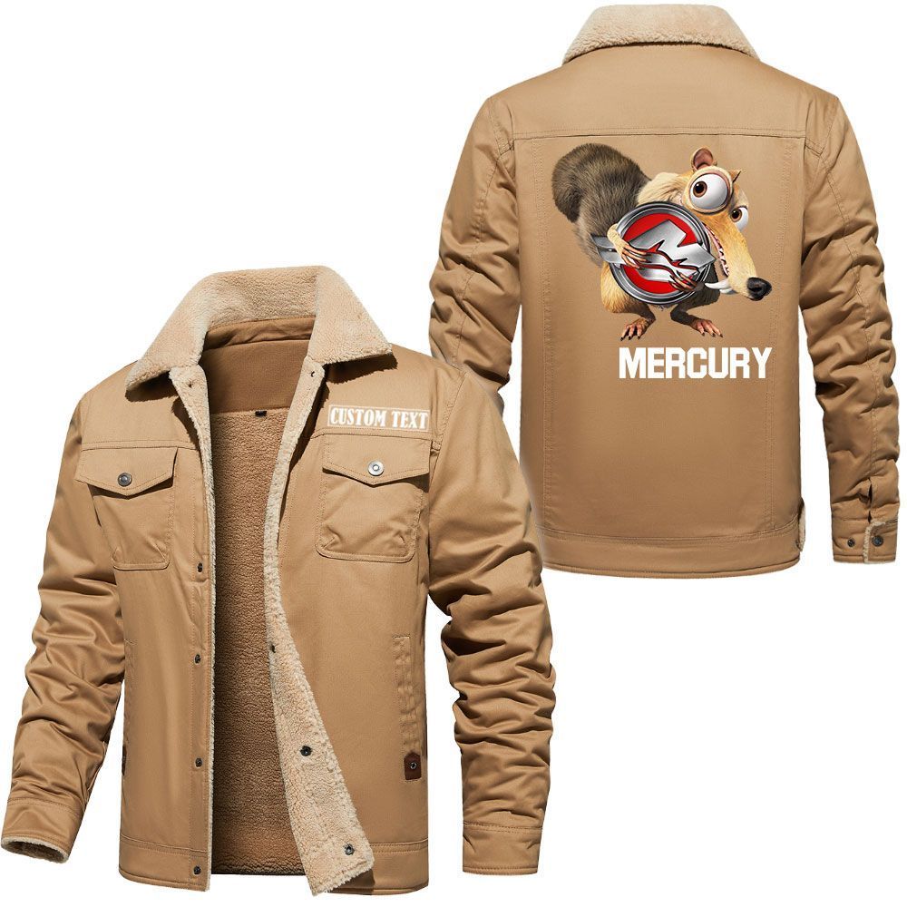 Mercury Marine Logo Custom Name Cargo Fleece Lined Cotton Jacket Scrat Ice Age Design Personalized Outerwear