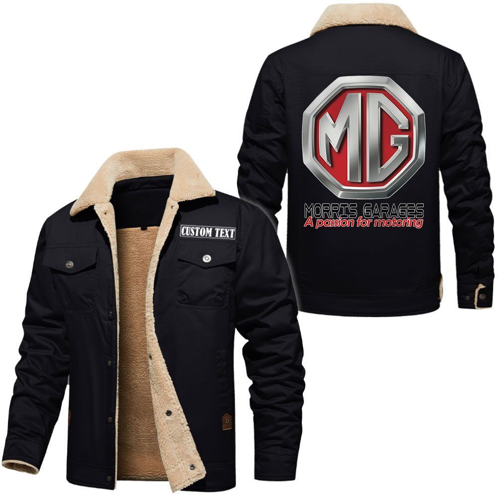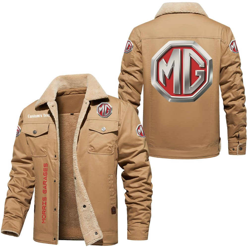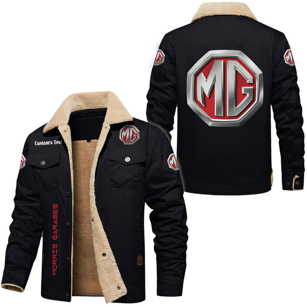 MG Morris Garages Cars Logo Custom Text Cargo Fleece Lined Cotton Jacket