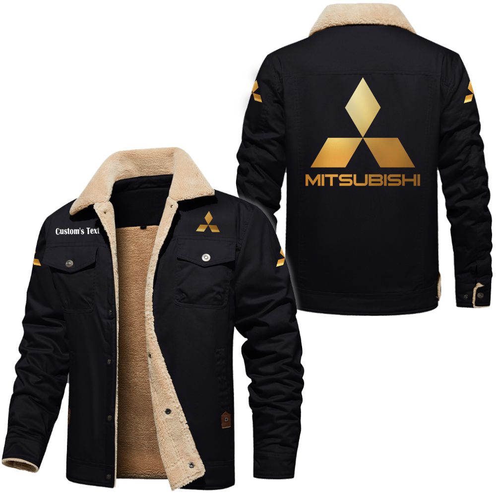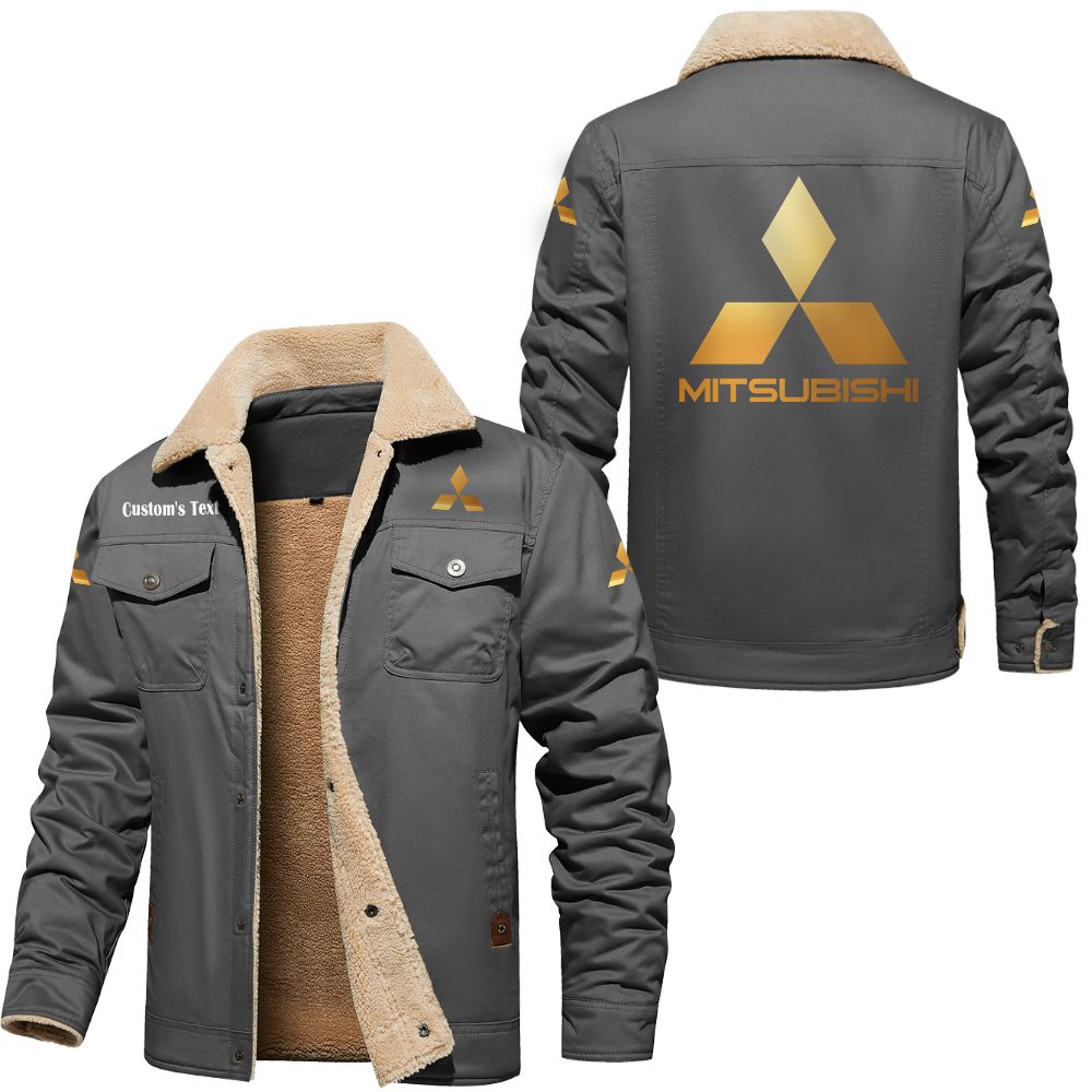Mitsubishi Logo Custom Name Cargo Fleece Lined Cotton Jacket