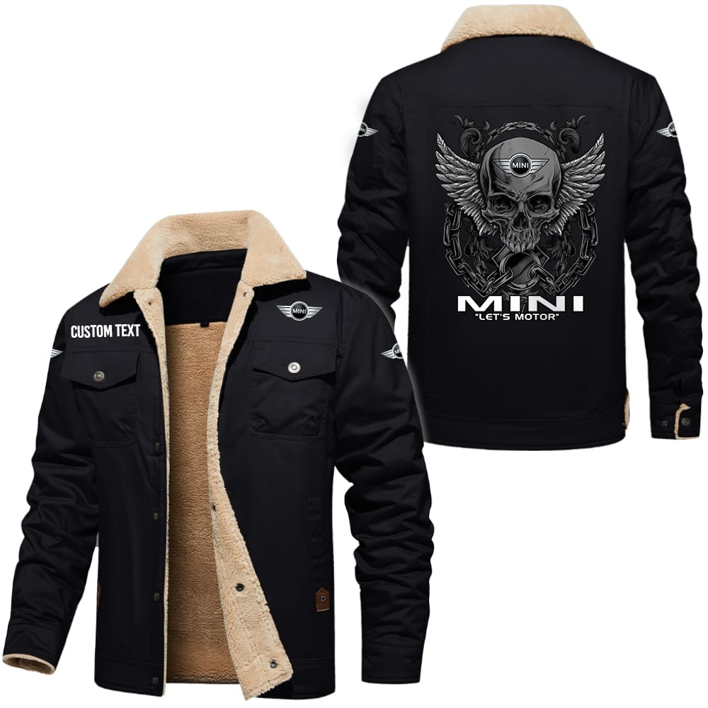 Minicooper Motor Skull Custom Name Cargo Fleece Lined Cotton Jacket