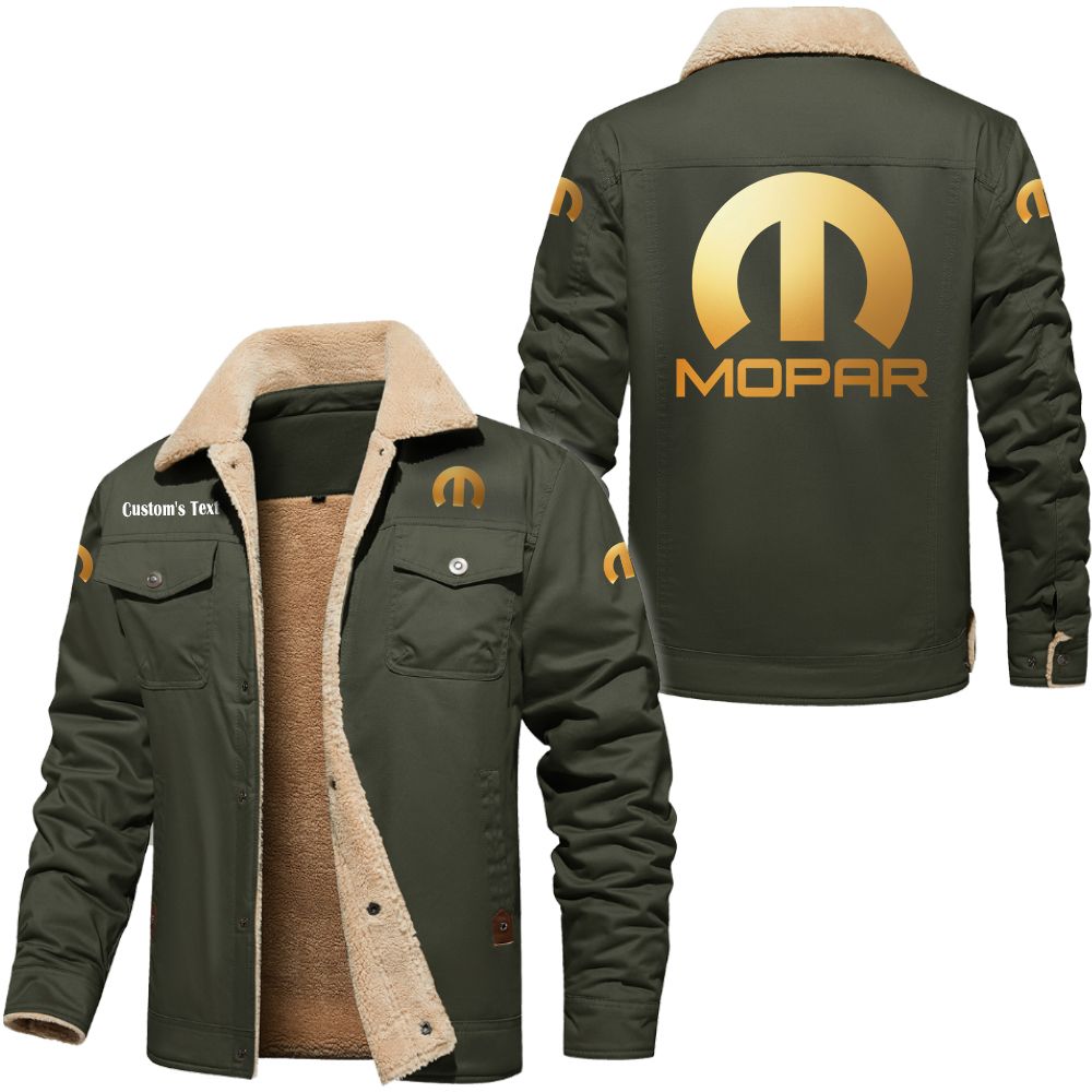 Mopar Golden Logo Custom Cargo Fleece Lined Cotton Jacket Army Green