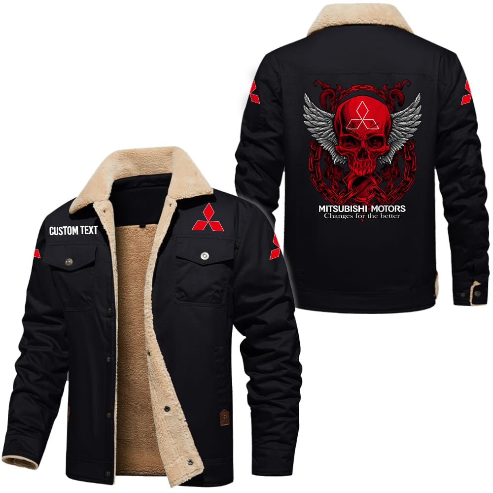 Mitsubishi Motors Custom Name Skull Design Cargo Fleece Lined Cotton Jacket