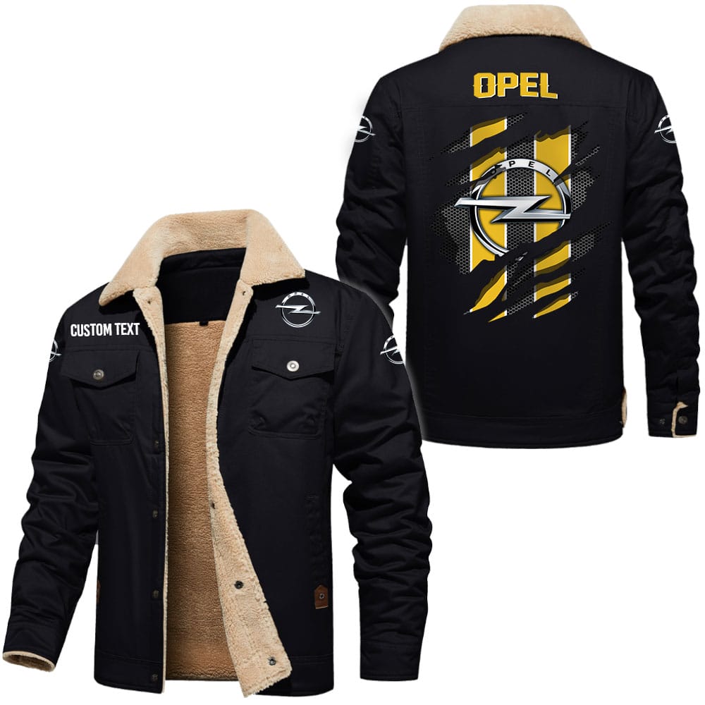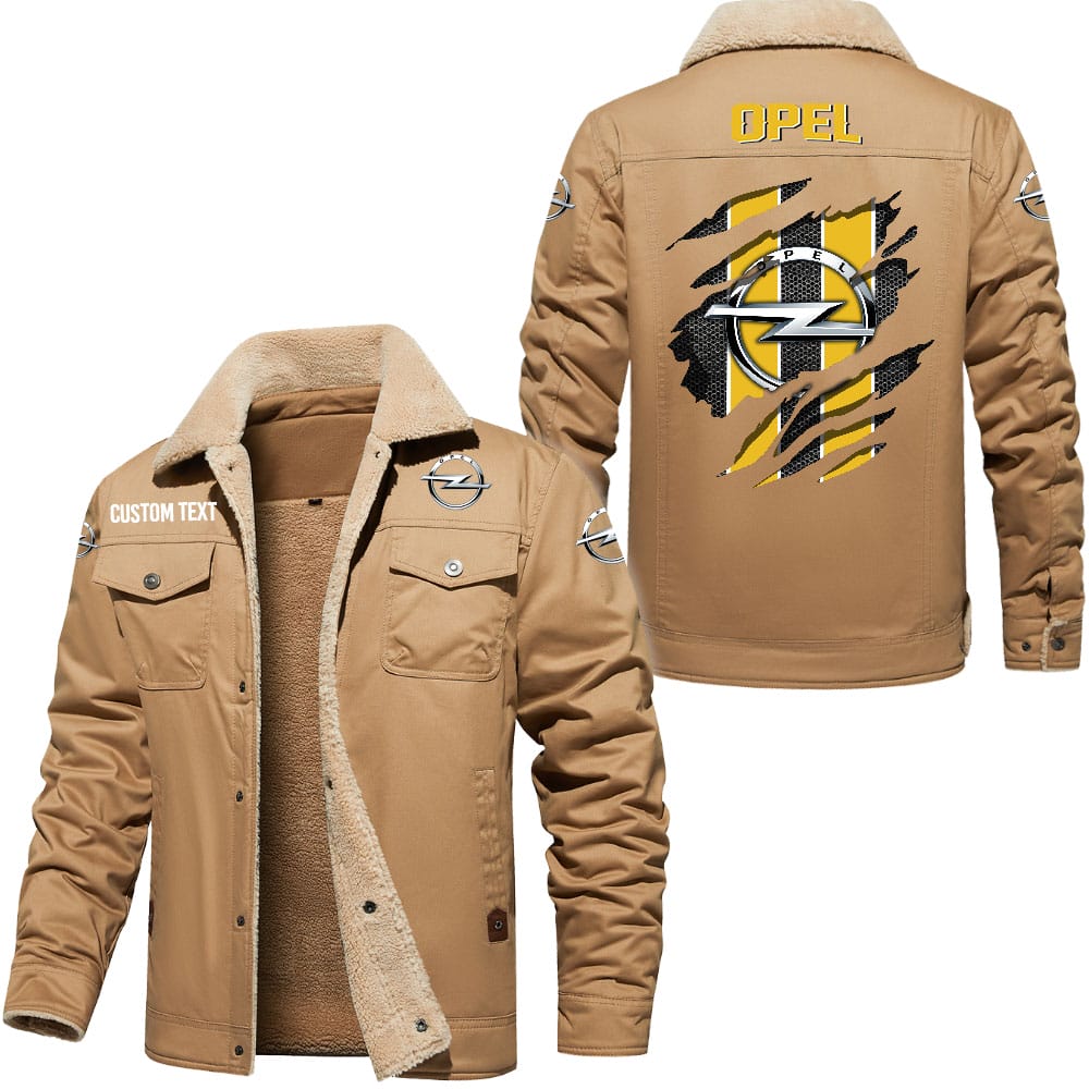Opel Logo Custom Name Cargo Fleece Lined Cotton Jacket Stylish Warm Personalized Outerwear