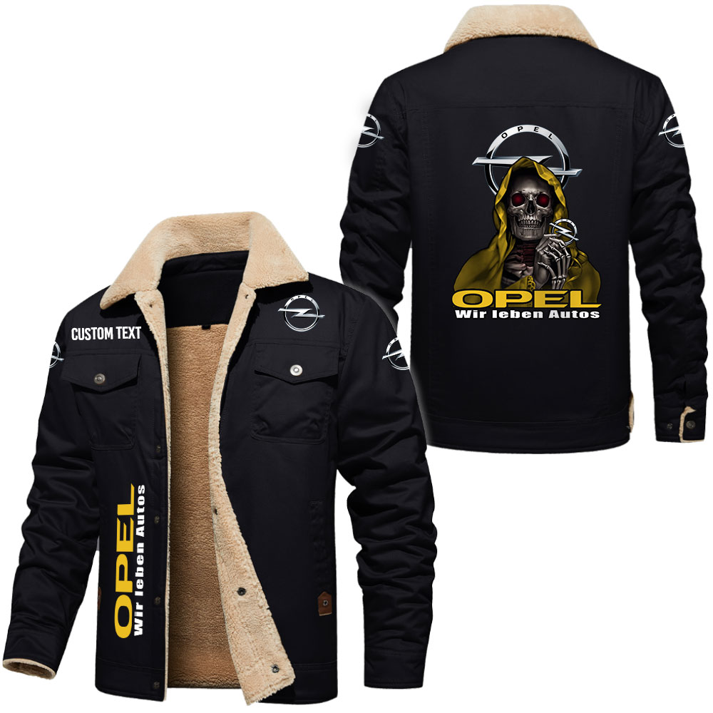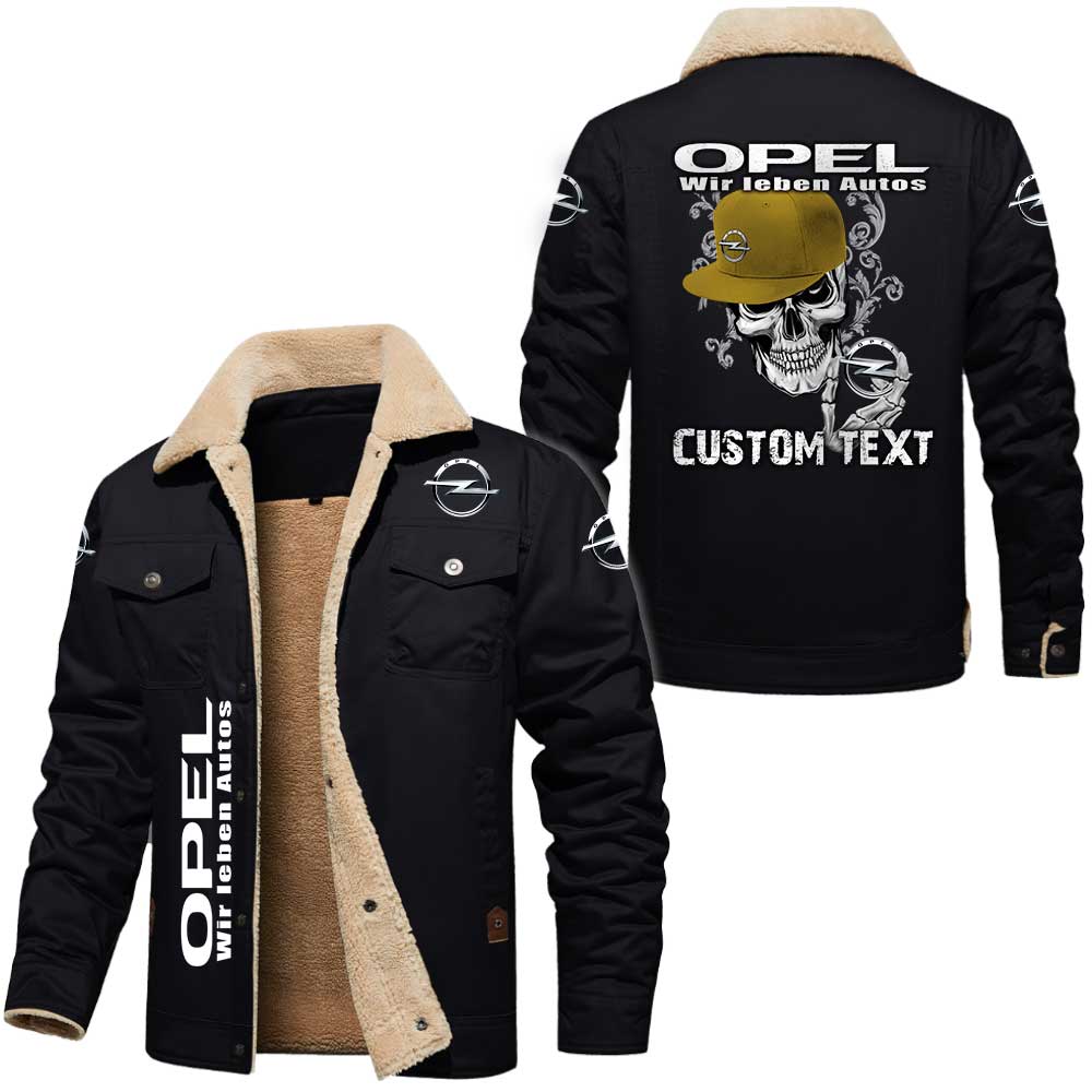 Opel Logo Custom Name Cargo Fleece Lined Cotton Jacket Personalized Outerwear with Skull Design