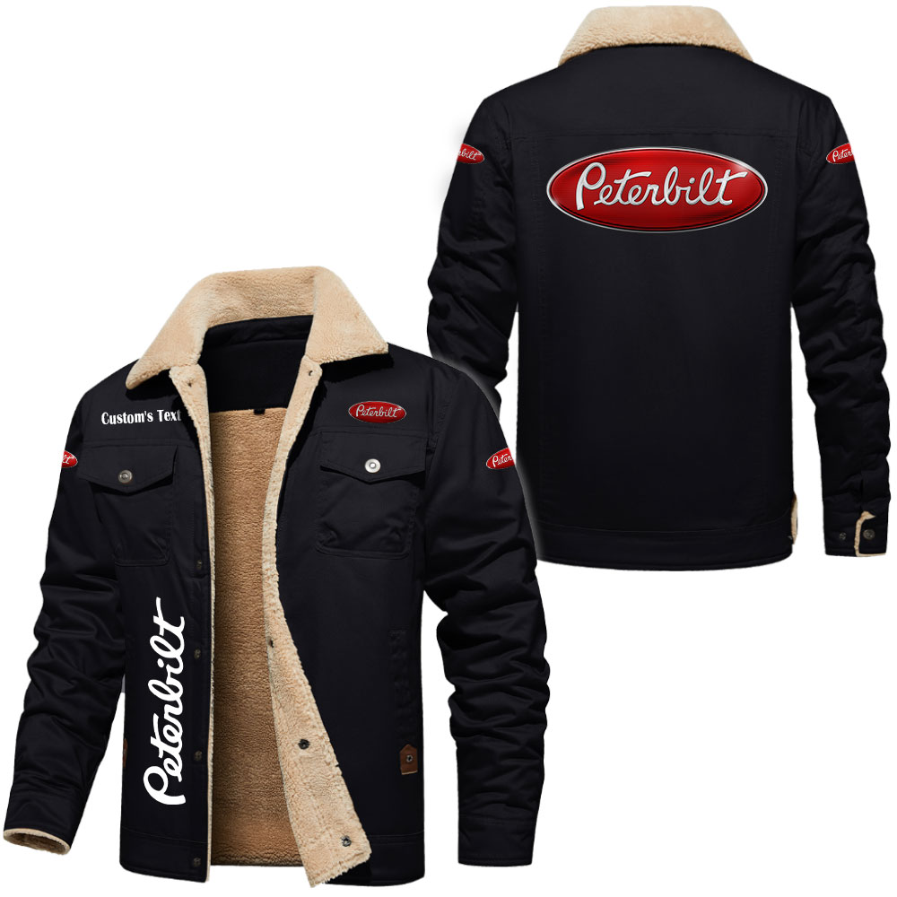 Peterbilt Logo Custom Text Cargo Fleece Lined Cotton Jacket