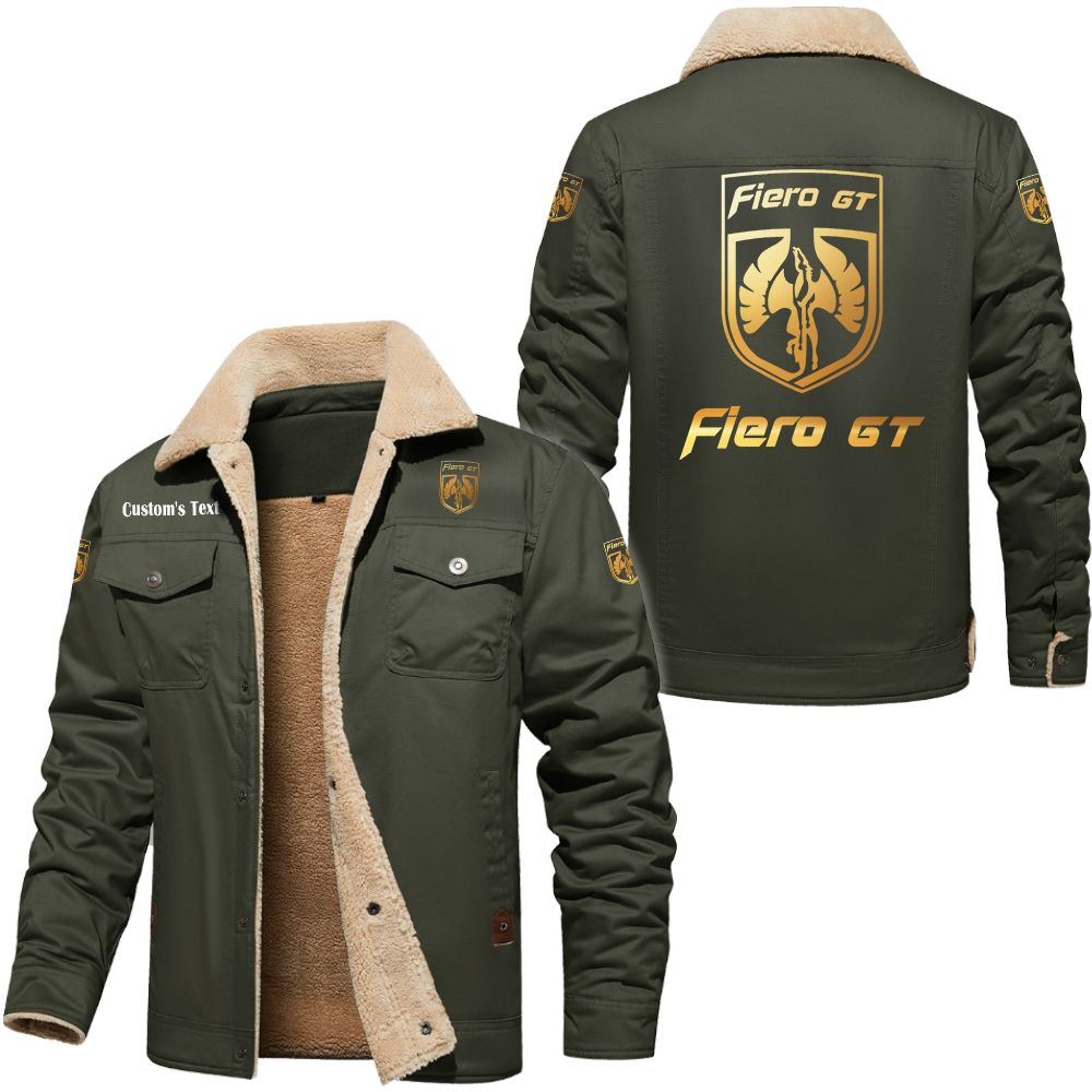 Pontiac Fiero Golden Logo Custom Cargo Fleece Lined Cotton Jacket Army Green