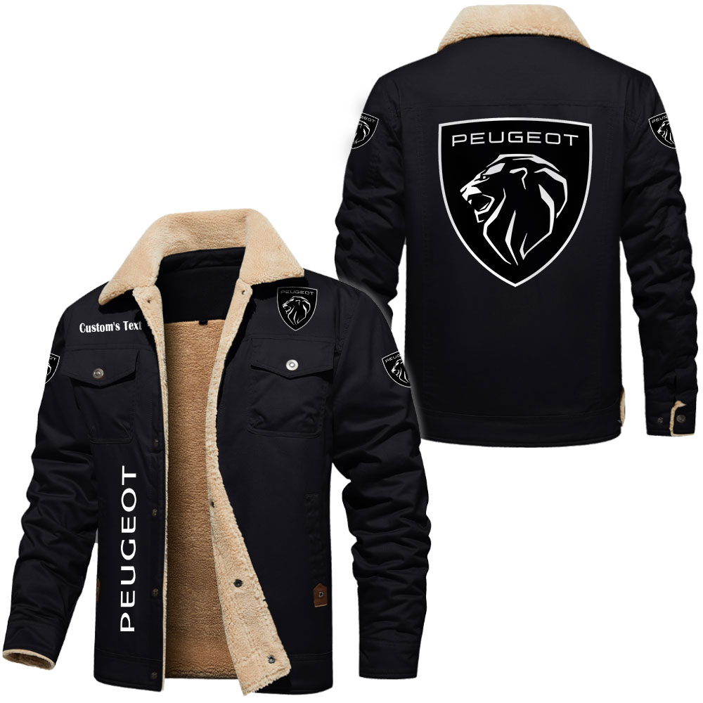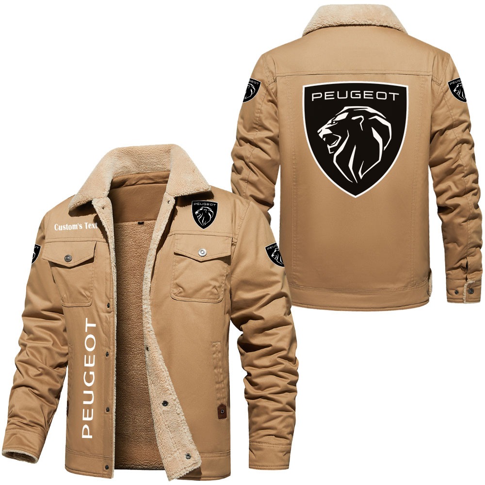 Peugeot Logo Custom Text Cargo Fleece Lined Cotton Jacket