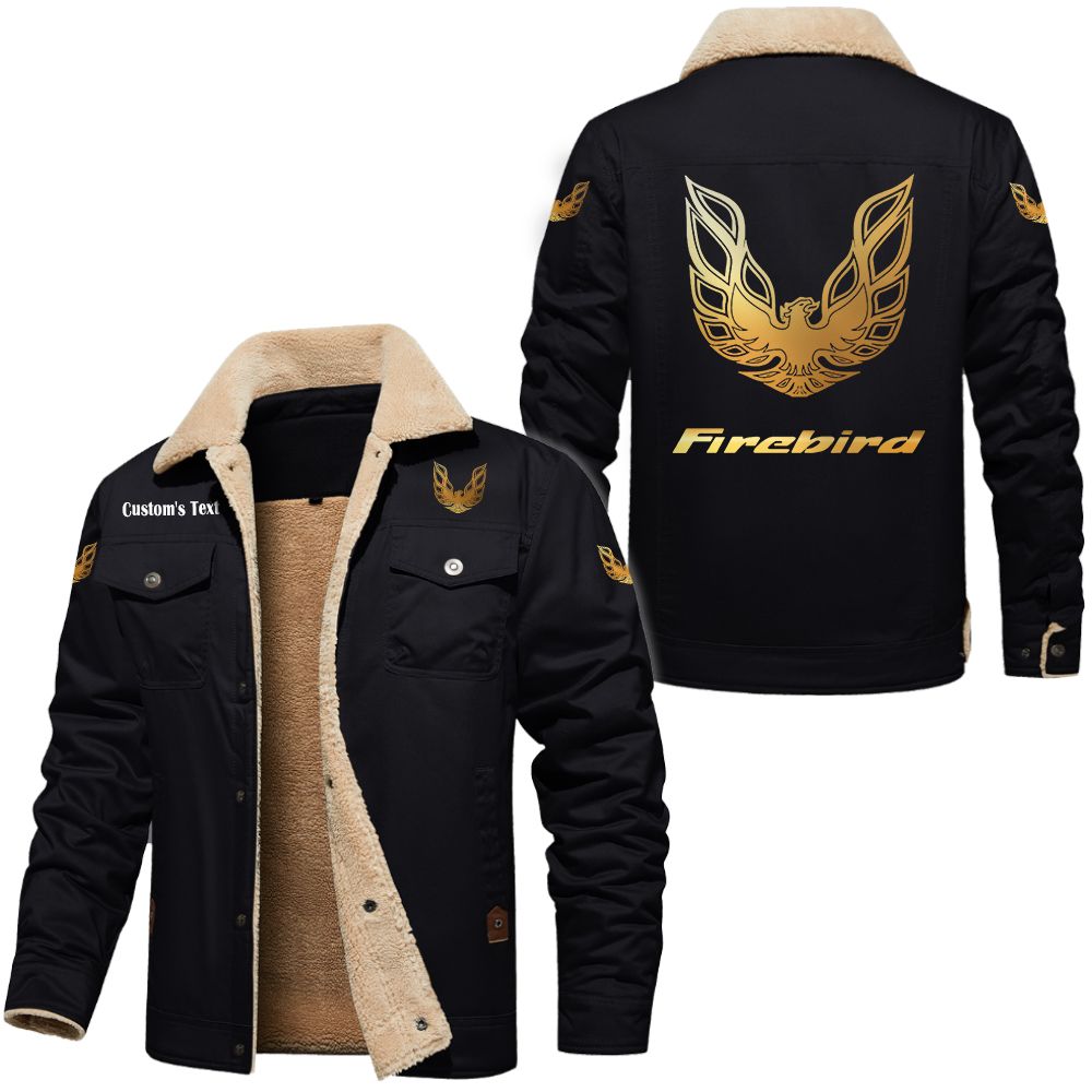 Pontiac Firebird Golden Logo Custom Cargo Fleece Lined Cotton Jacket Black