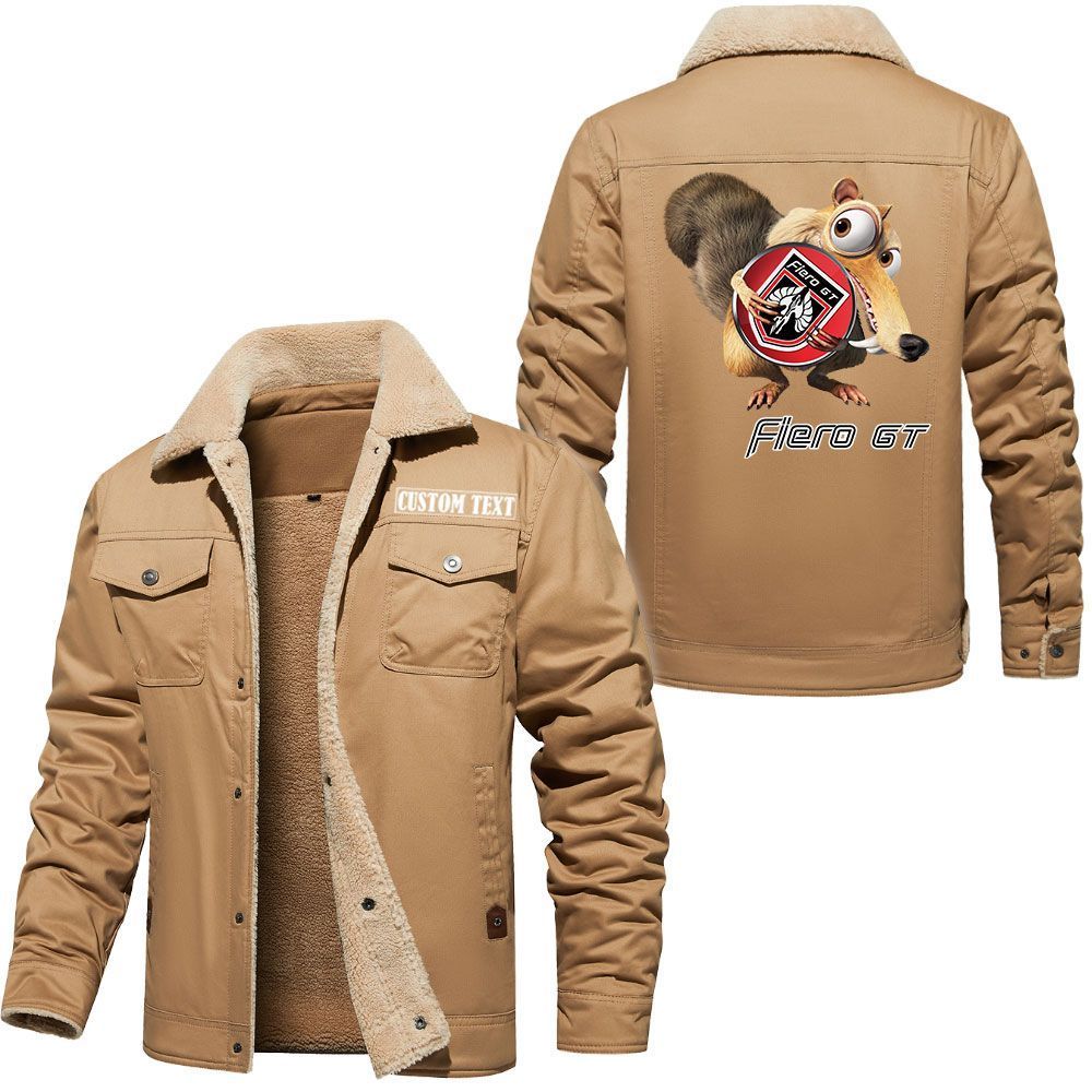 Pontiac Fiero Logo Custom Name Cargo Fleece Lined Cotton Jacket Scrat Ice Age Design Personalized Outerwear