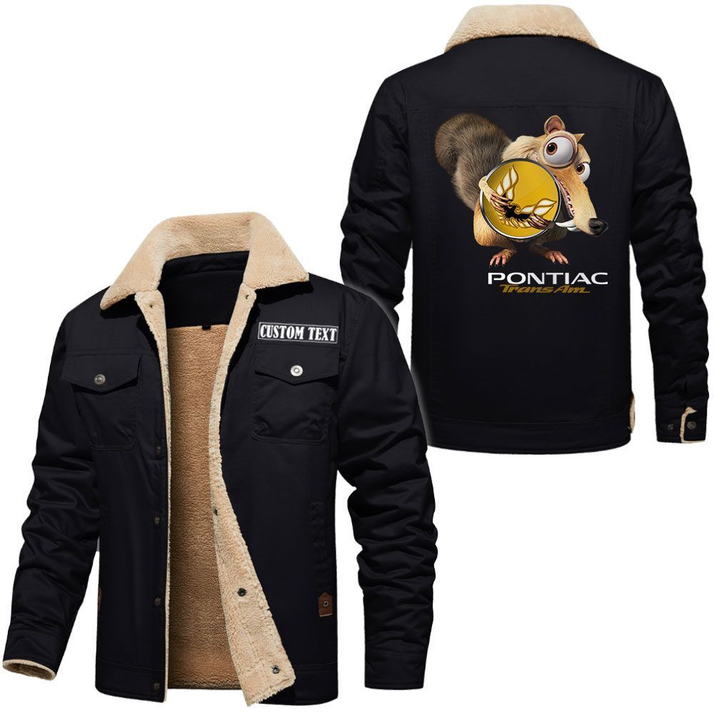 Pontiac Trans Am Logo Custom Name Cargo Fleece Lined Cotton Jacket Scrat Ice Age Design Personalized Outerwear