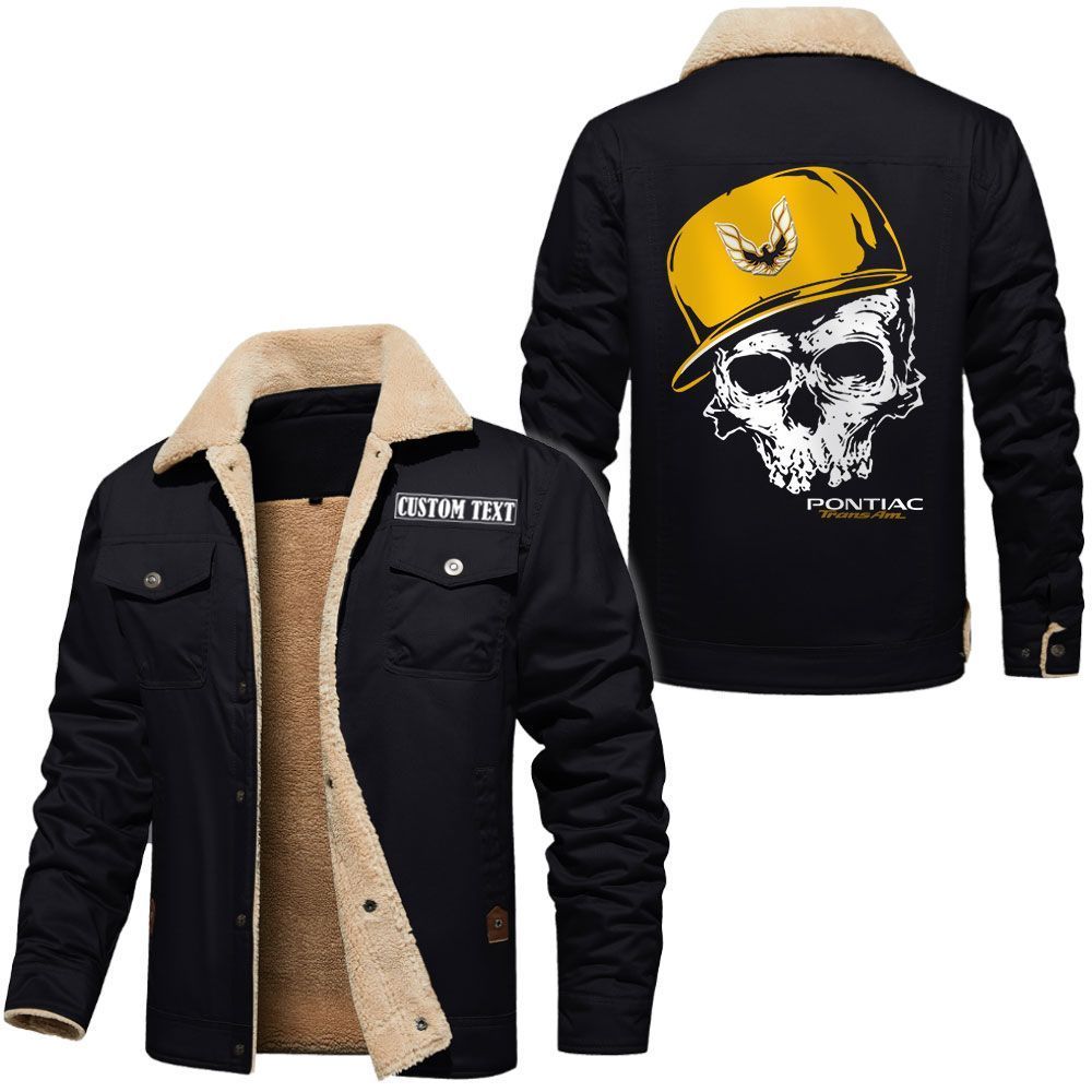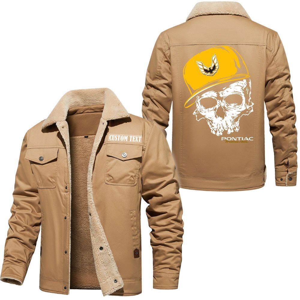 Pontiac Trans Am Logo Custom Name Cargo Fleece Lined Cotton Jacket Personalized Outerwear with Skull Design