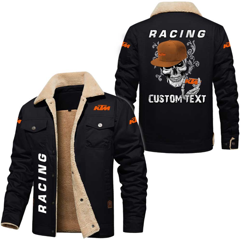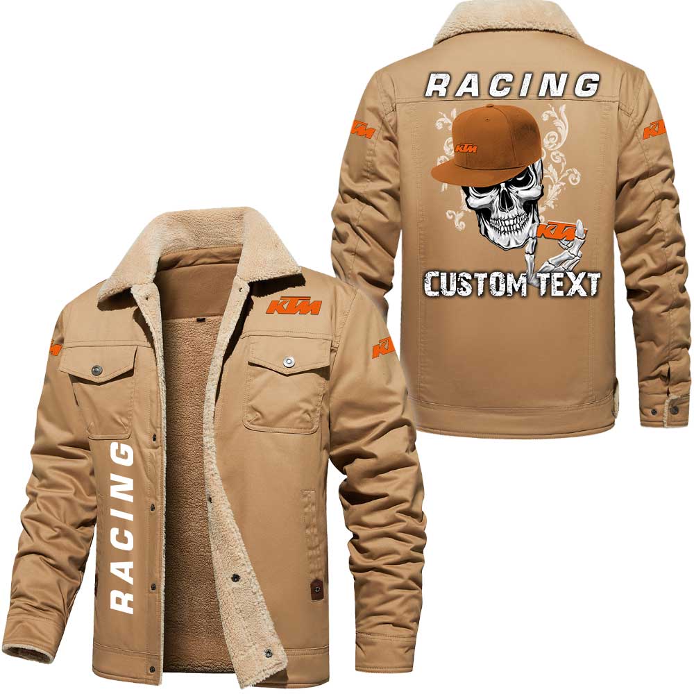 Racing KTM Skull Custom Name Cargo Fleece Lined Cotton Jacket