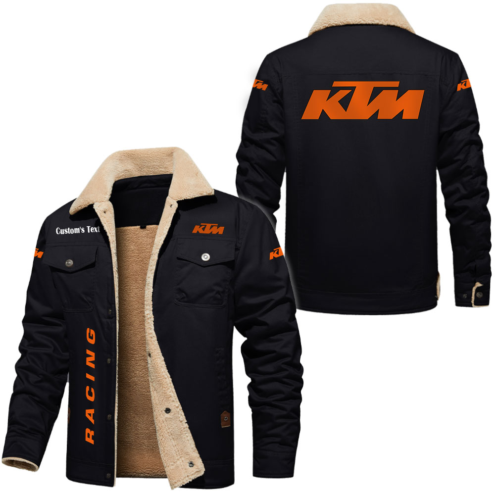 Racing KTM Logo Custom Text Cargo Fleece Lined Cotton Jacket