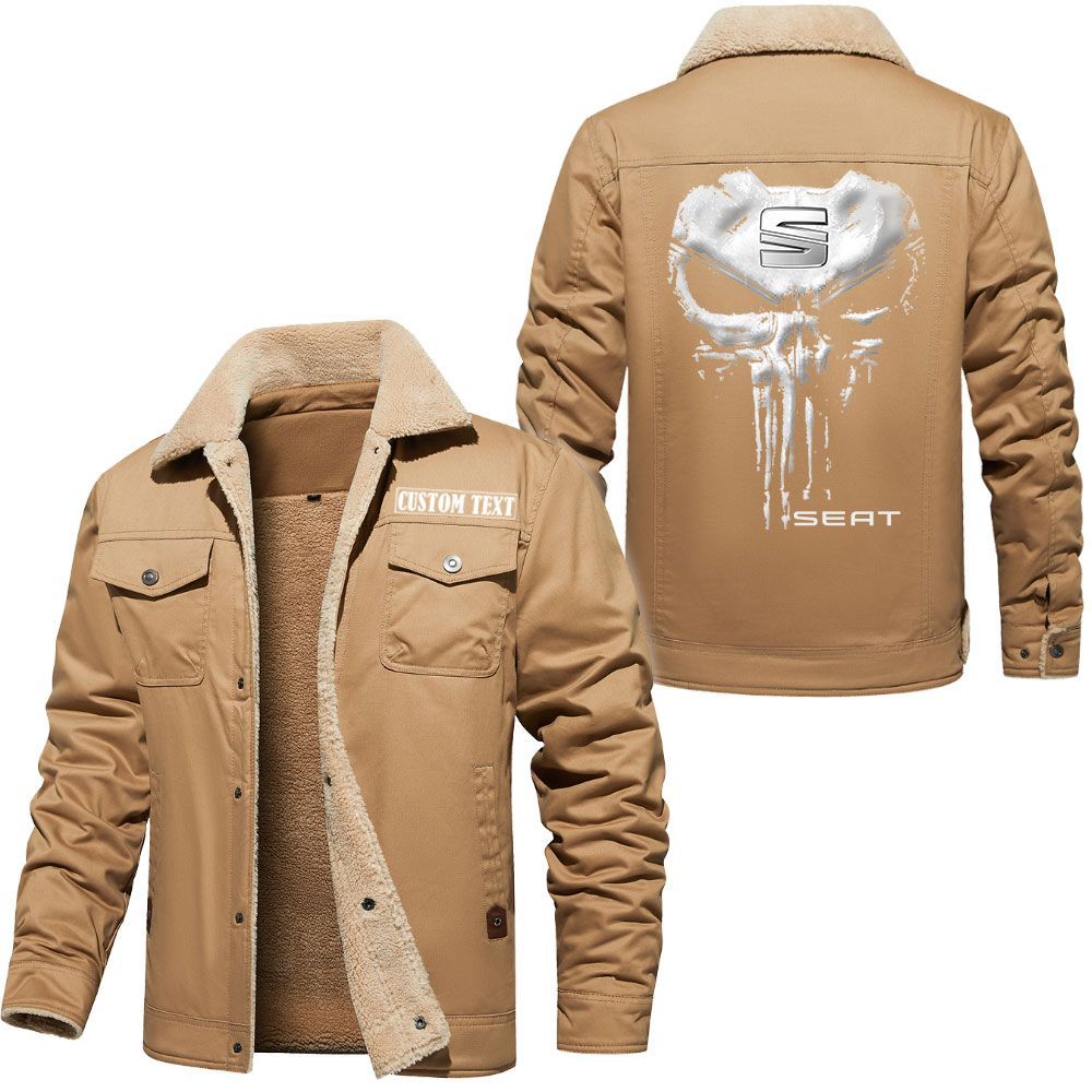 SEAT Logo Custom Name Cargo Fleece Lined Cotton Jacket Personalized Outerwear with Punisher Skull Design
