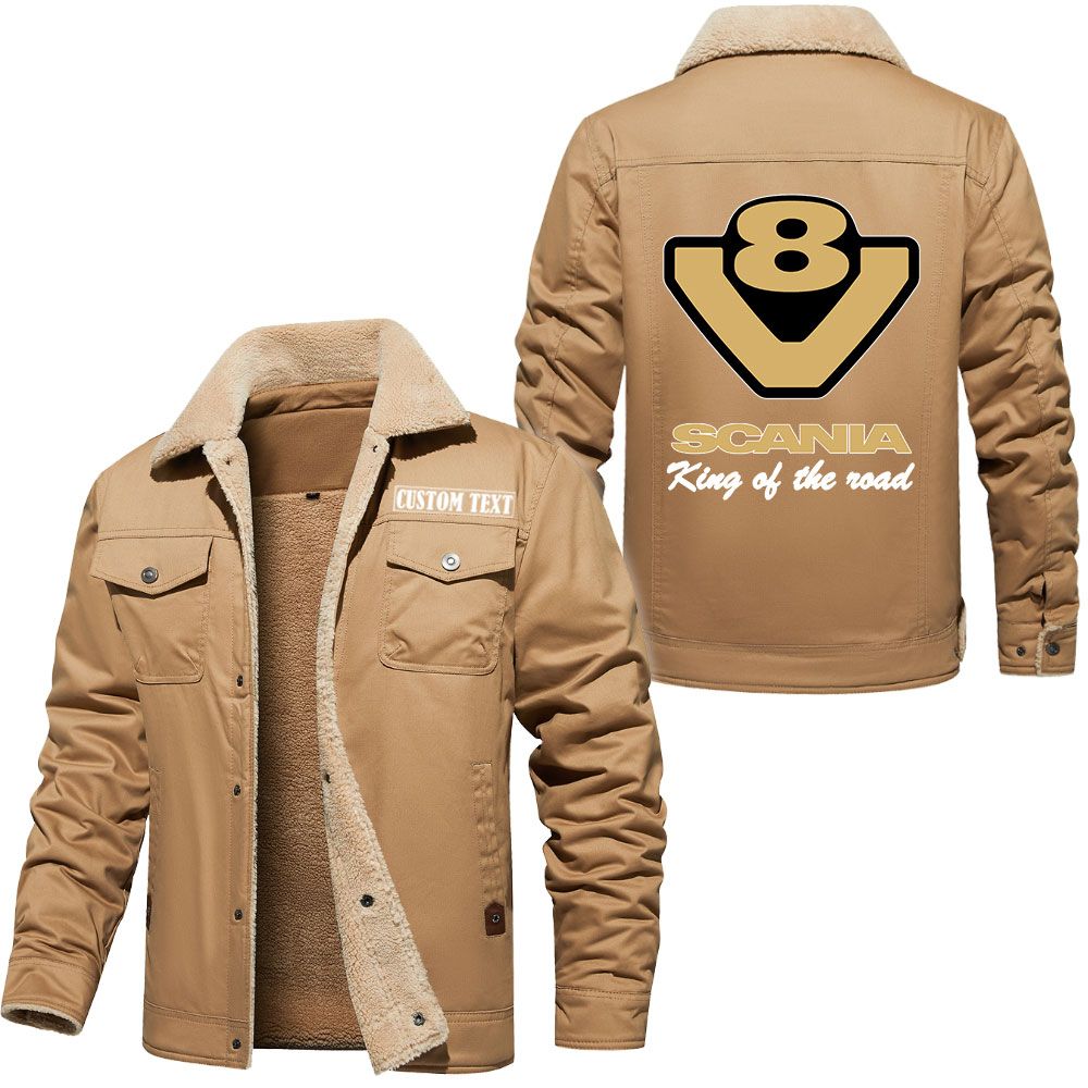 Scania V8 Logo Custom Text Cargo Fleece Lined Cotton Jacket