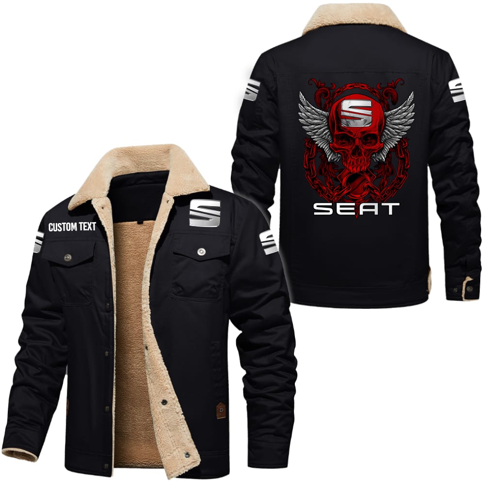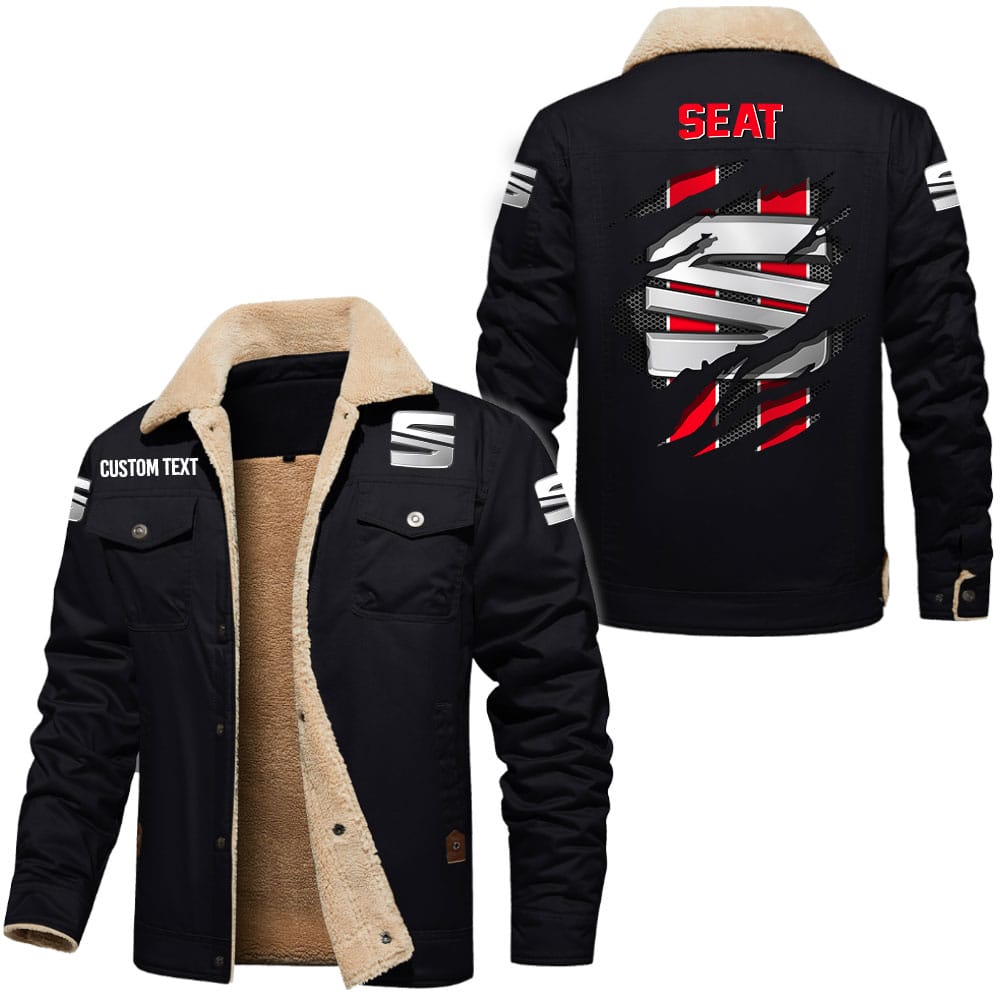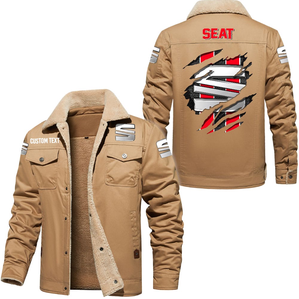SEAT Logo Custom Name Cargo Fleece Lined Cotton Jacket A Real Man Who Loves Personalized Outerwear