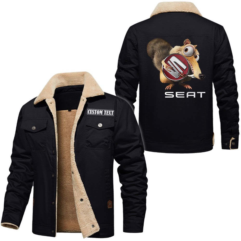SEAT Logo Custom Name Cargo Fleece Lined Cotton Jacket Scrat Ice Age Design Personalized Outerwear