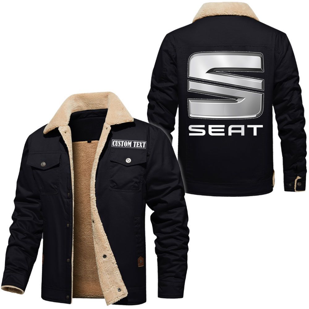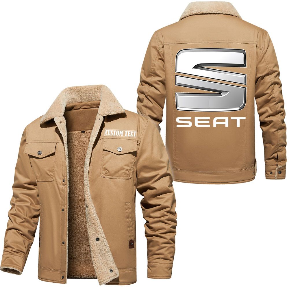 SEAT Logo Custom Name Cargo Fleece Lined Cotton Jacket Stylish Warm Personalized Outerwear
