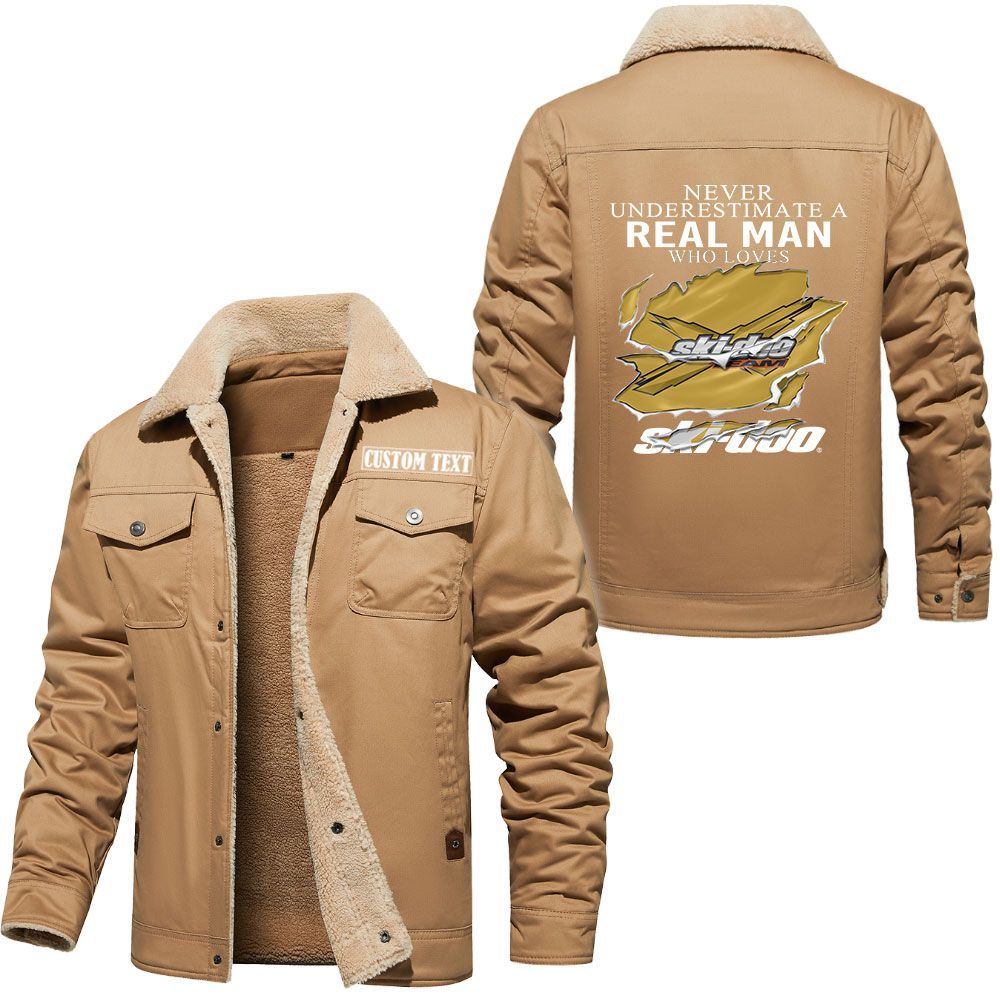Ski Doo Logo Custom Name Cargo Fleece Lined Cotton Jacket A Real Man Who Loves Personalized Outerwear