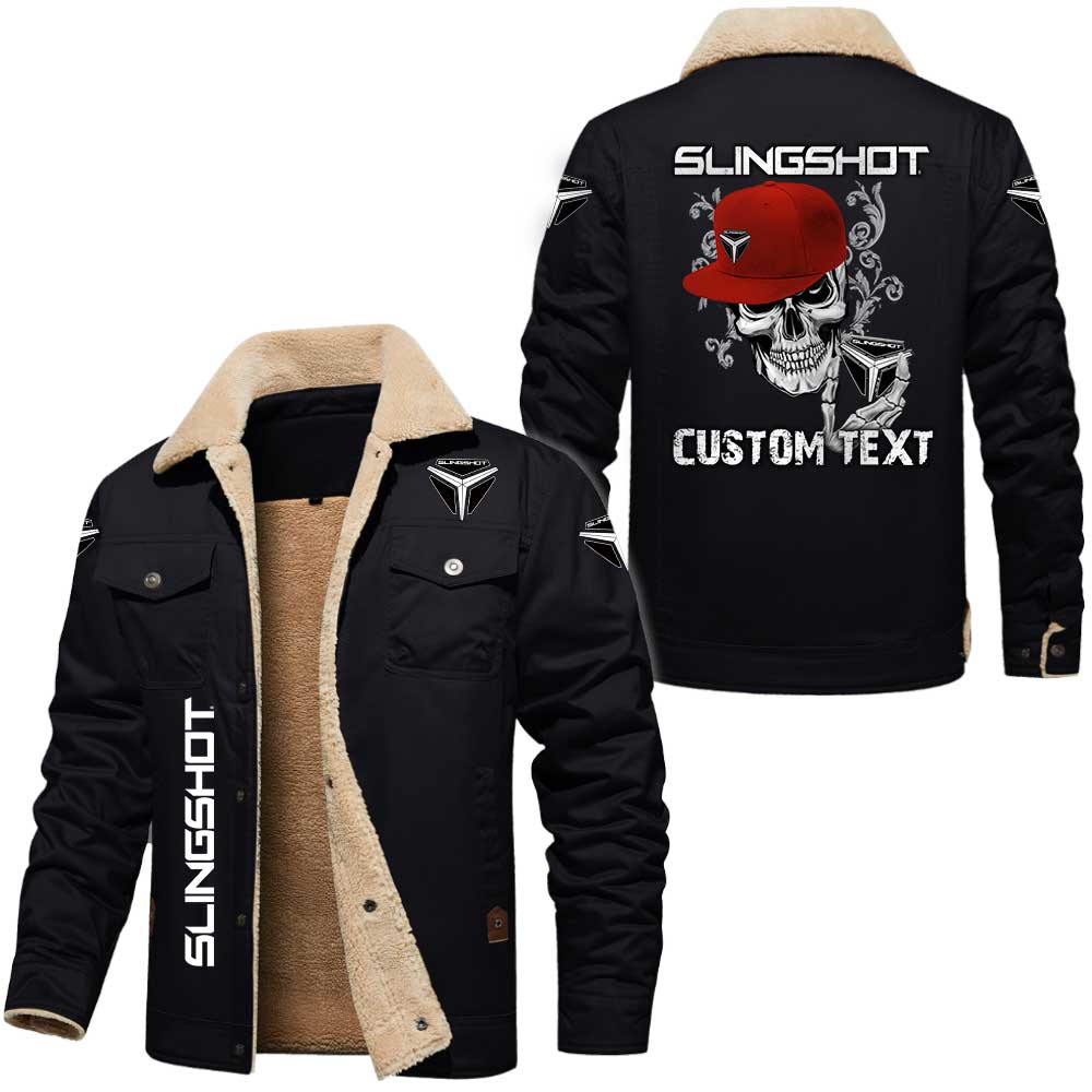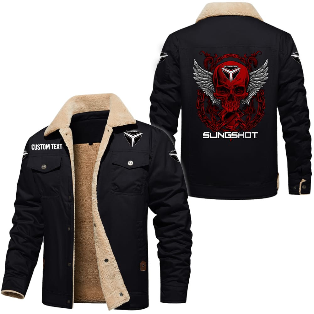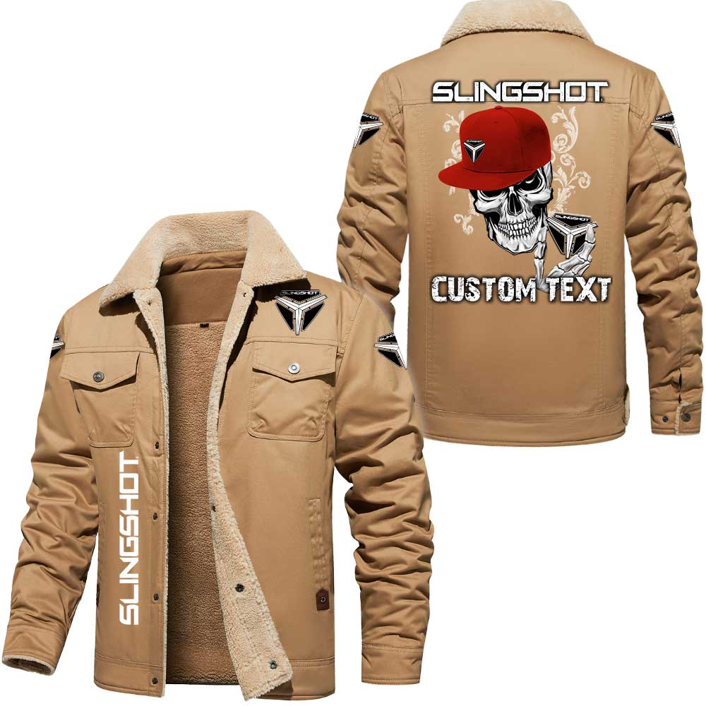 Slingshot Logo Skull Design Custom Text Cargo Fleece Lined Cotton Jacket