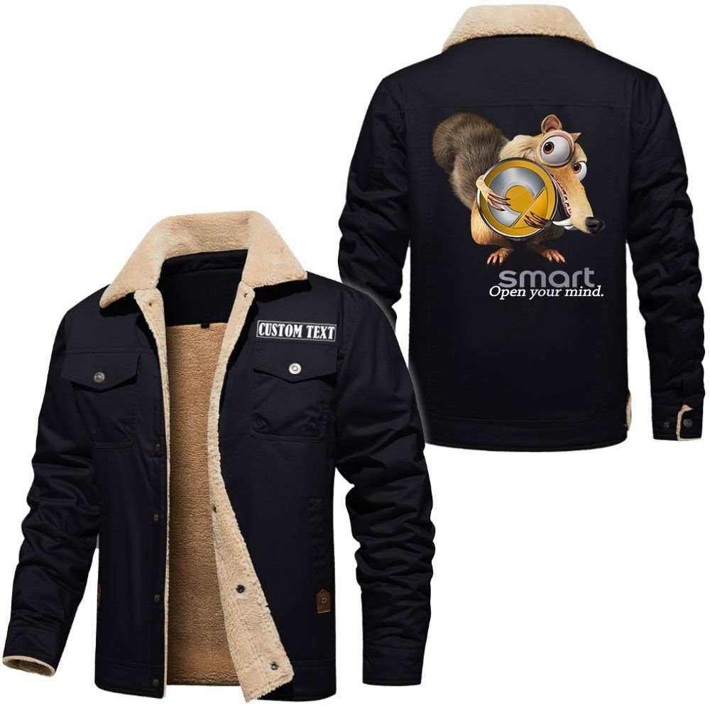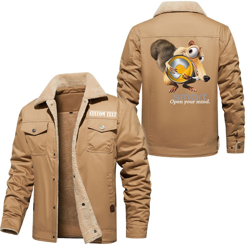 Smart Logo Custom Name Cargo Fleece Lined Cotton Jacket Scrat Ice Age Design Personalized Outerwear