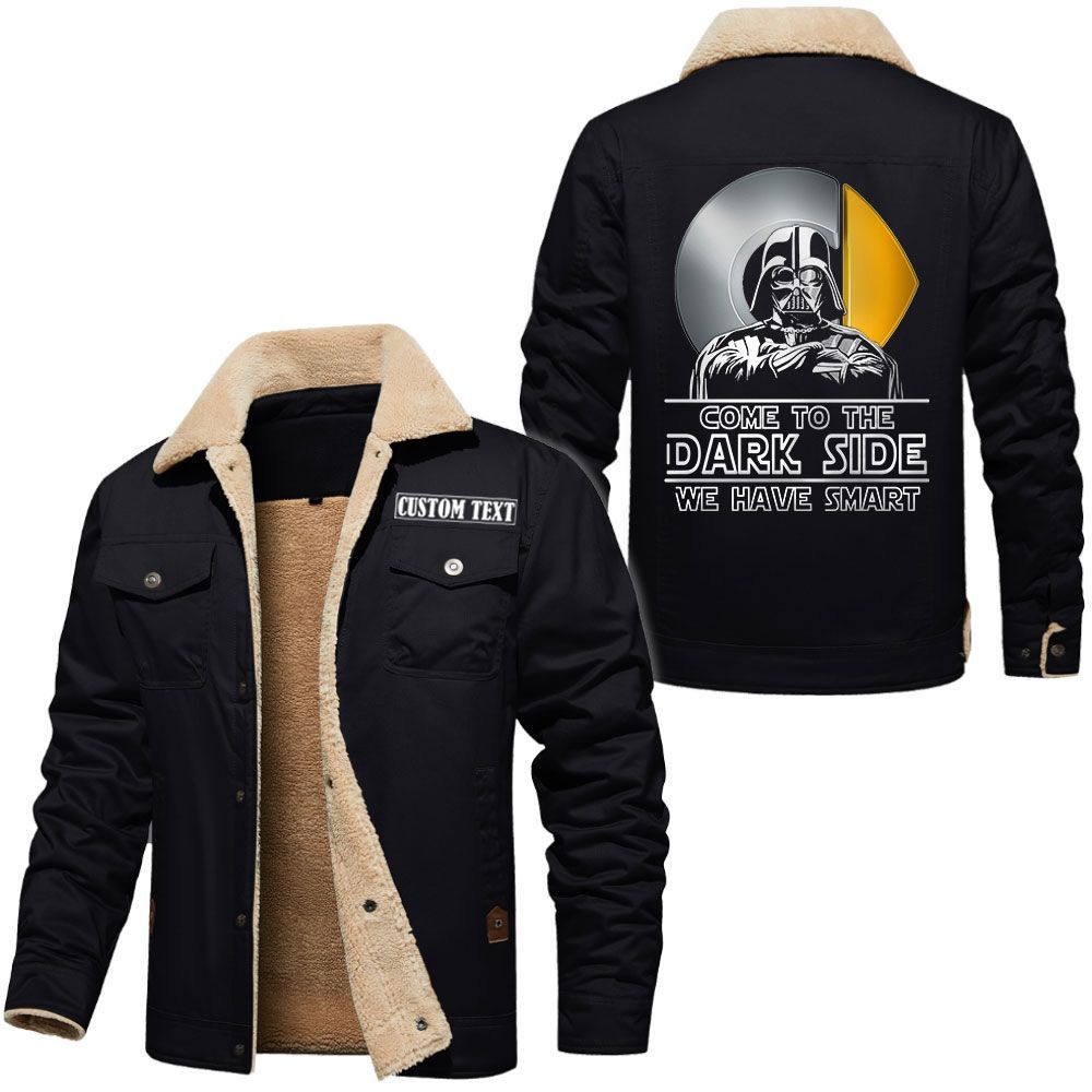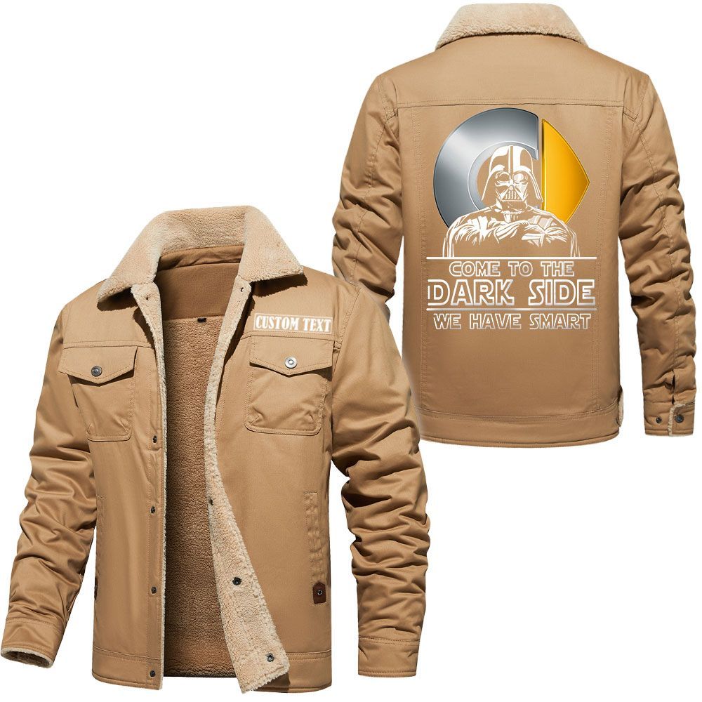 Smart Logo Custom Name Cargo Fleece Lined Cotton Jacket Personalized Outerwear with Dark Side Star Wars Design