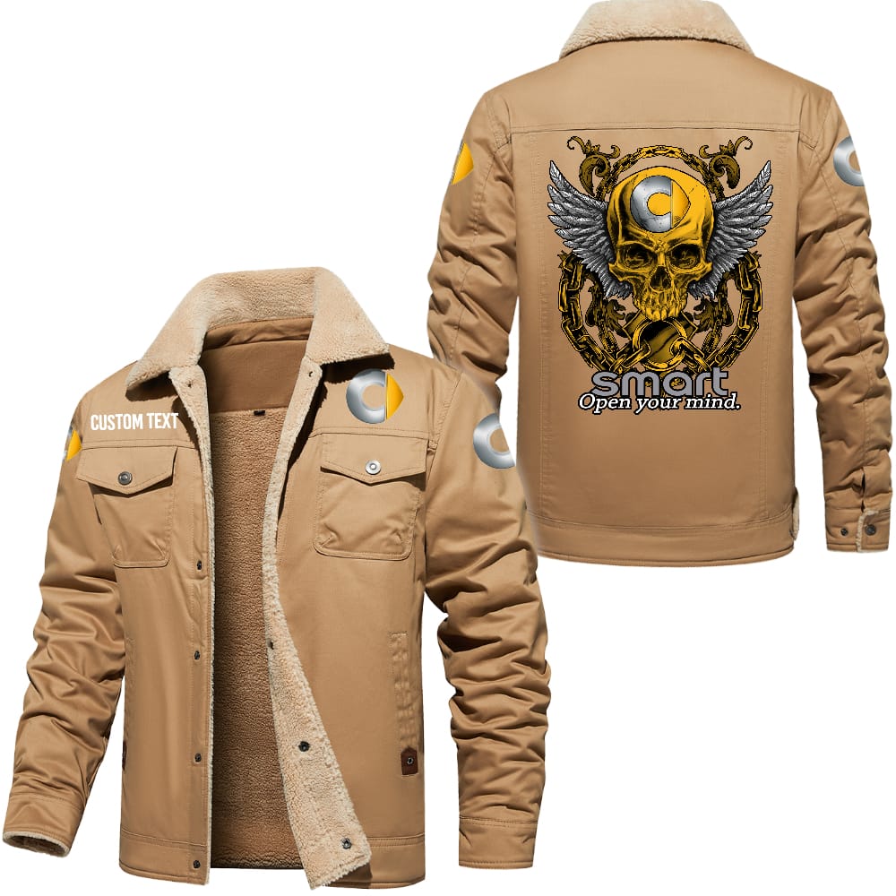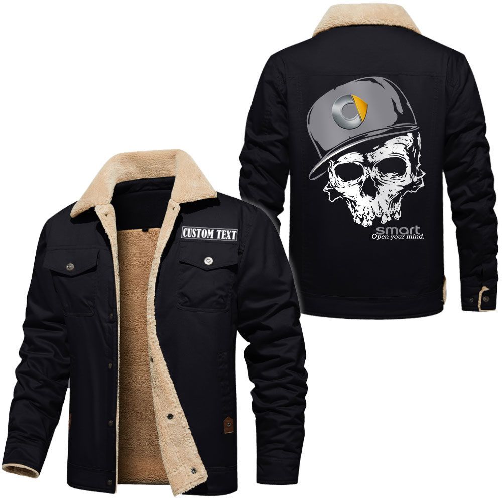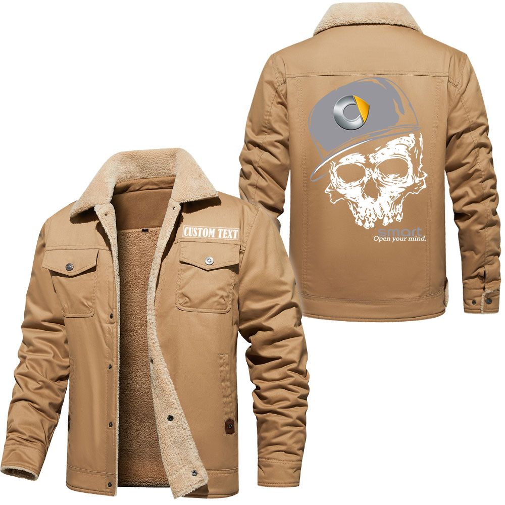 Smart Open Your Mind Custom Name Skull Design Cargo Fleece Lined Cotton Jacket