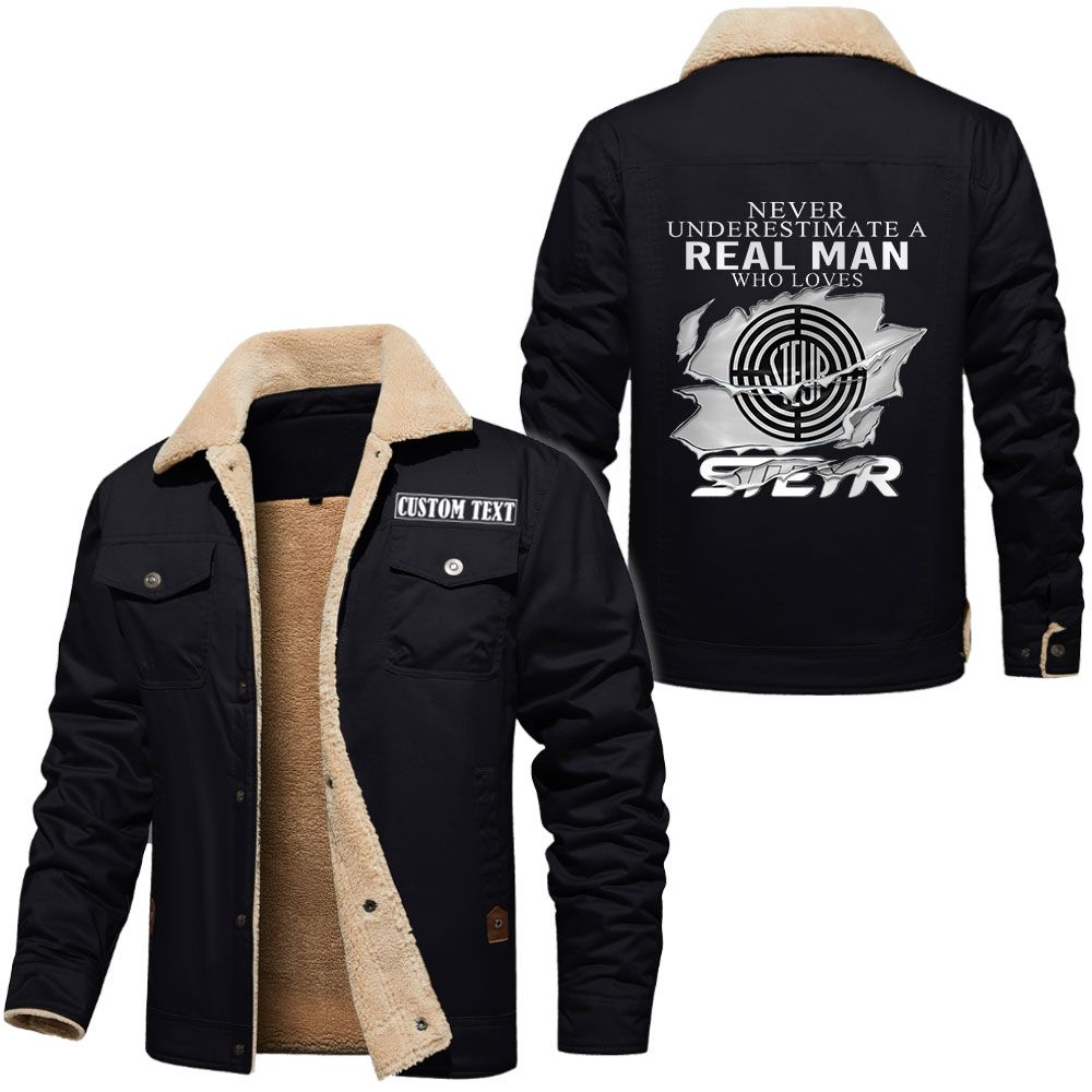 Steyr Tractor Logo Custom Name Cargo Fleece Lined Cotton Jacket A Real Man Who Loves Personalized Outerwear