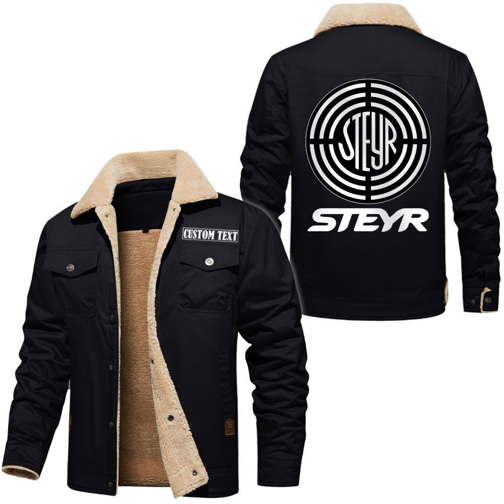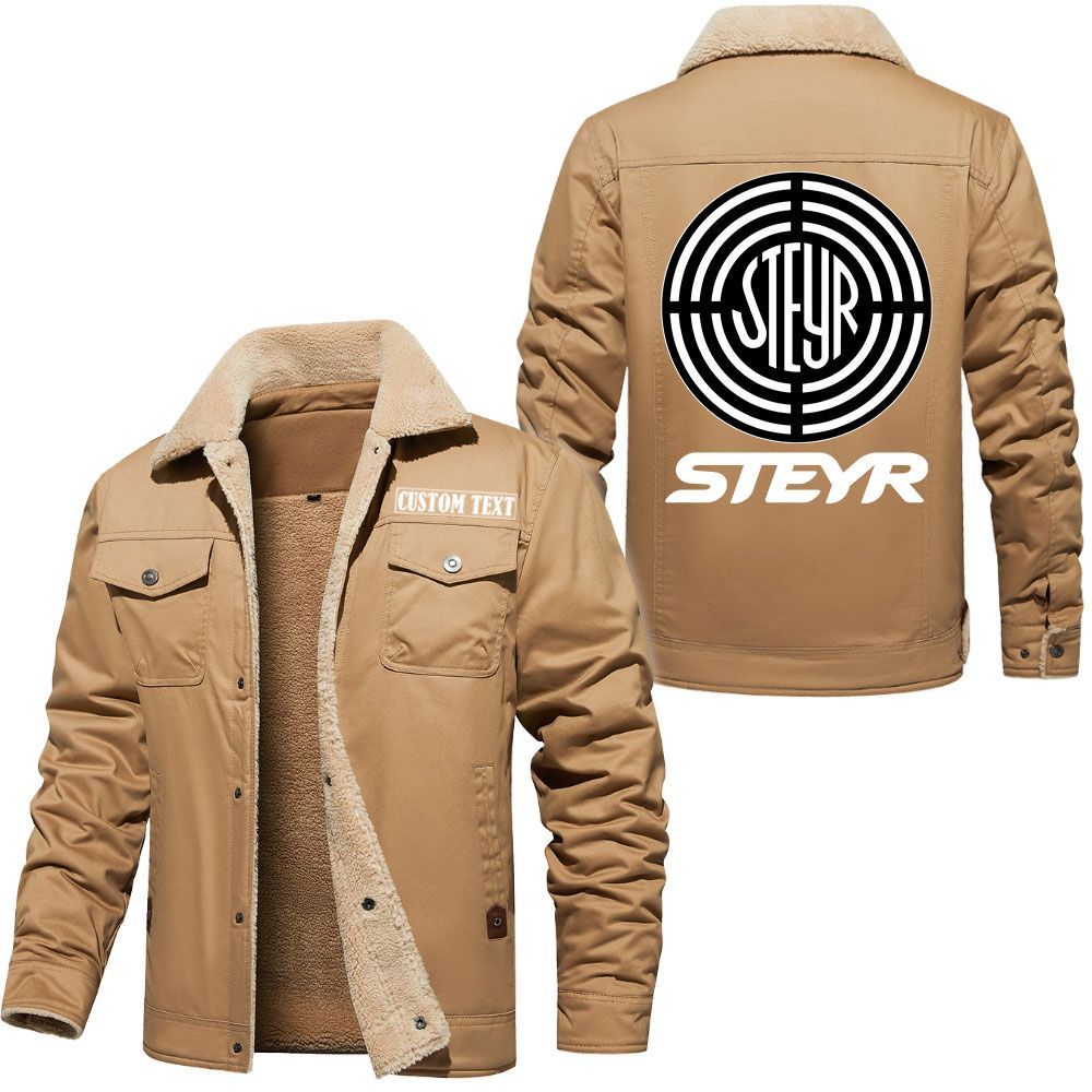 Steyr Tractor Logo Custom Name Cargo Fleece Lined Cotton Jacket Stylish Warm Personalized Outerwear