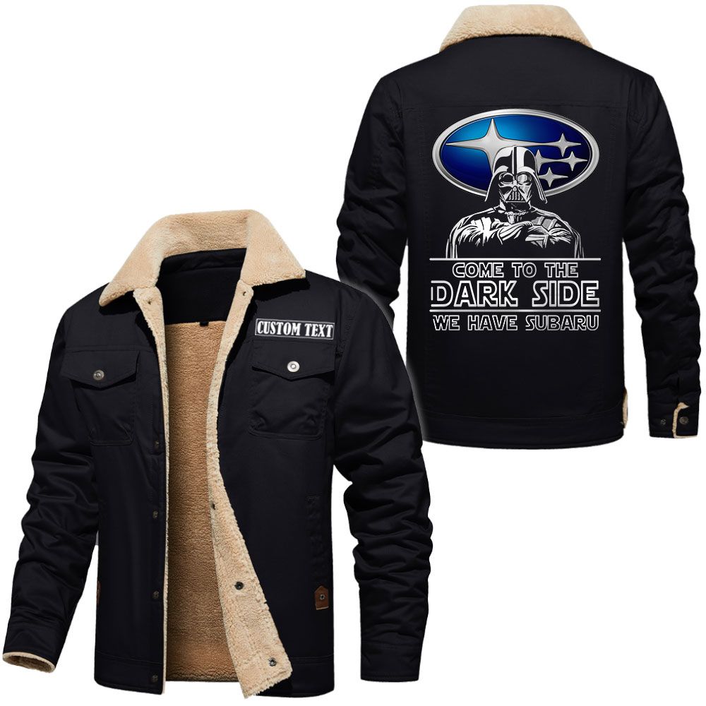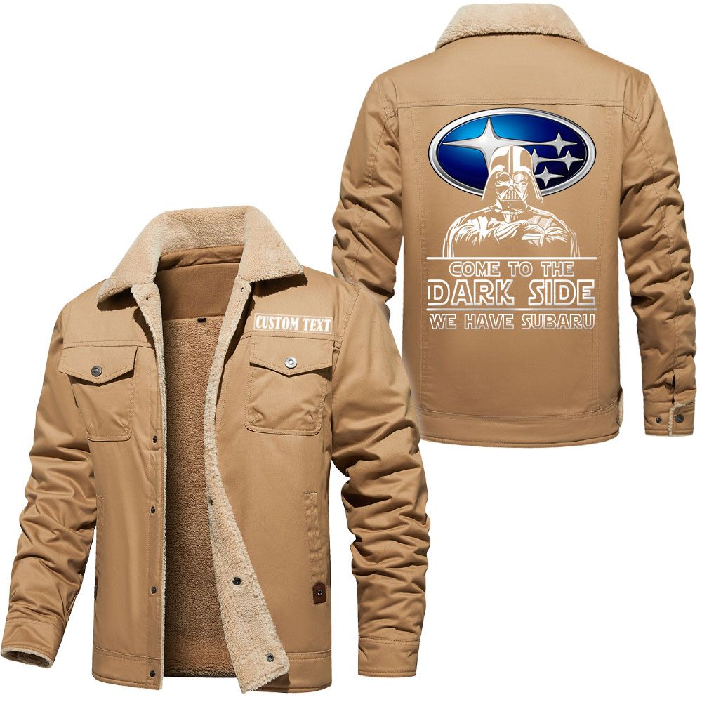 Subaru Logo Custom Name Cargo Fleece Lined Cotton Jacket Personalized Outerwear with Dark Side Star Wars Design