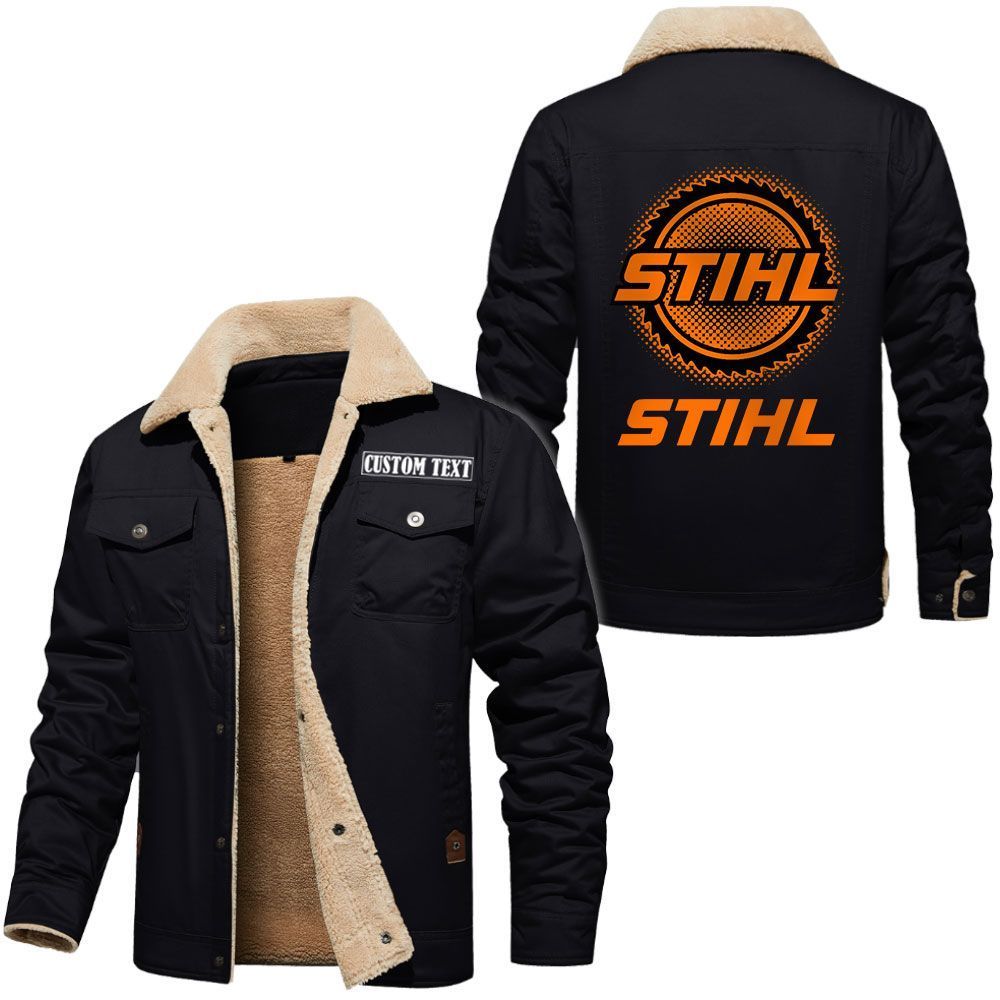Stihl Logo Custom Name Cargo Fleece Lined Cotton Jacket Stylish Warm Personalized Outerwear