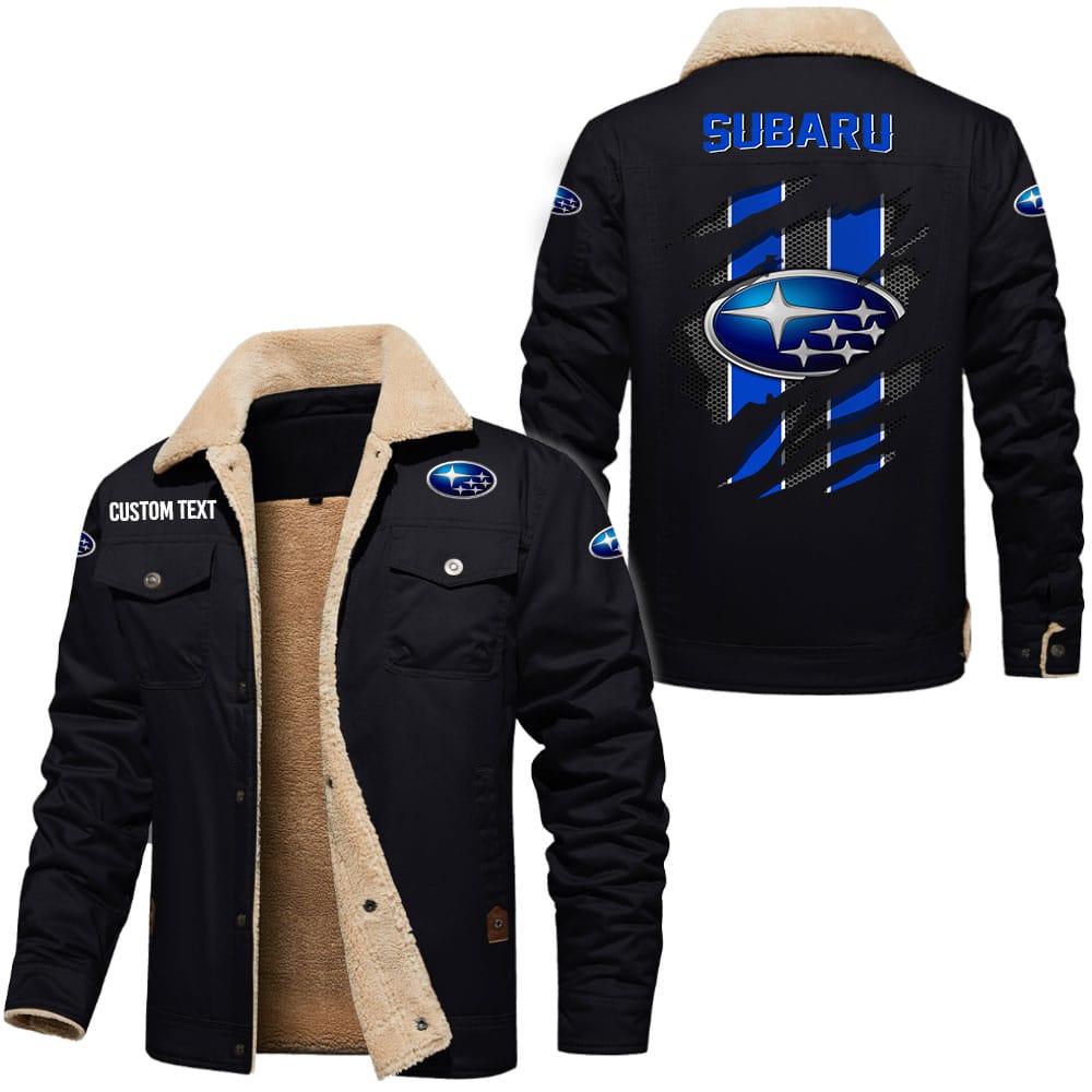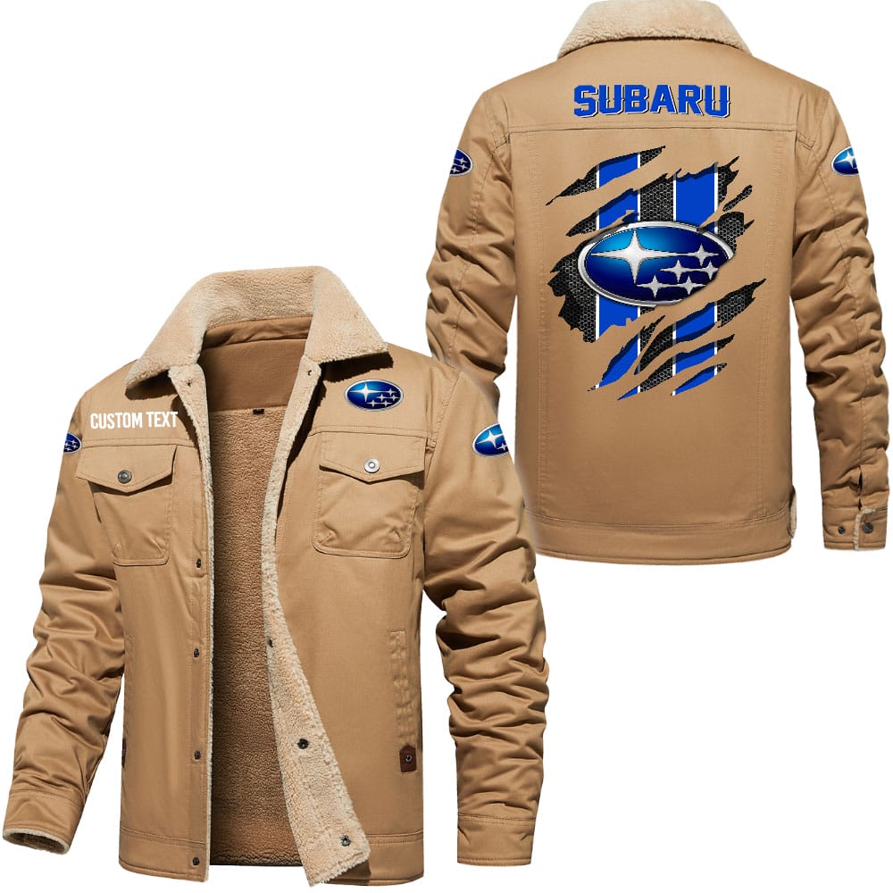Subaru Logo Custom Name Cargo Fleece Lined Cotton Jacket