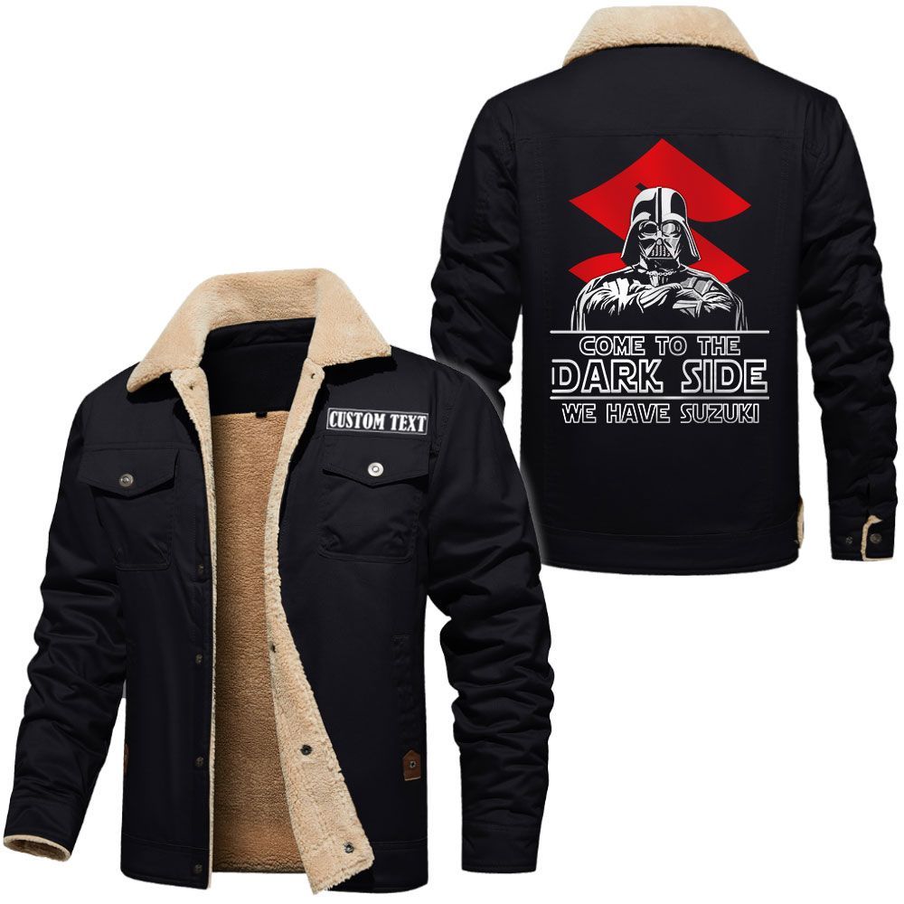 Suzuki Logo Custom Name Cargo Fleece Lined Cotton Jacket Personalized Outerwear with Dark Side Star Wars Design
