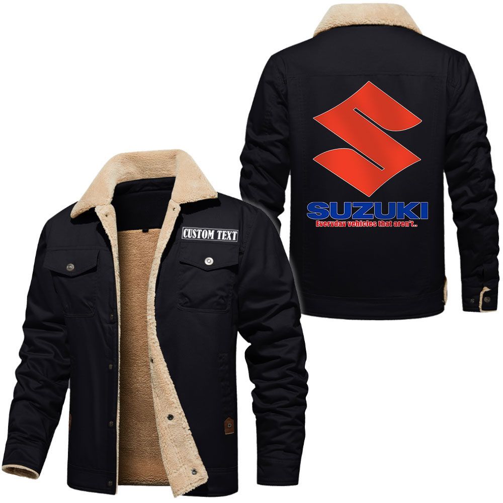 Suzuki Logo Custom Name Cargo Fleece Lined Cotton Jacket